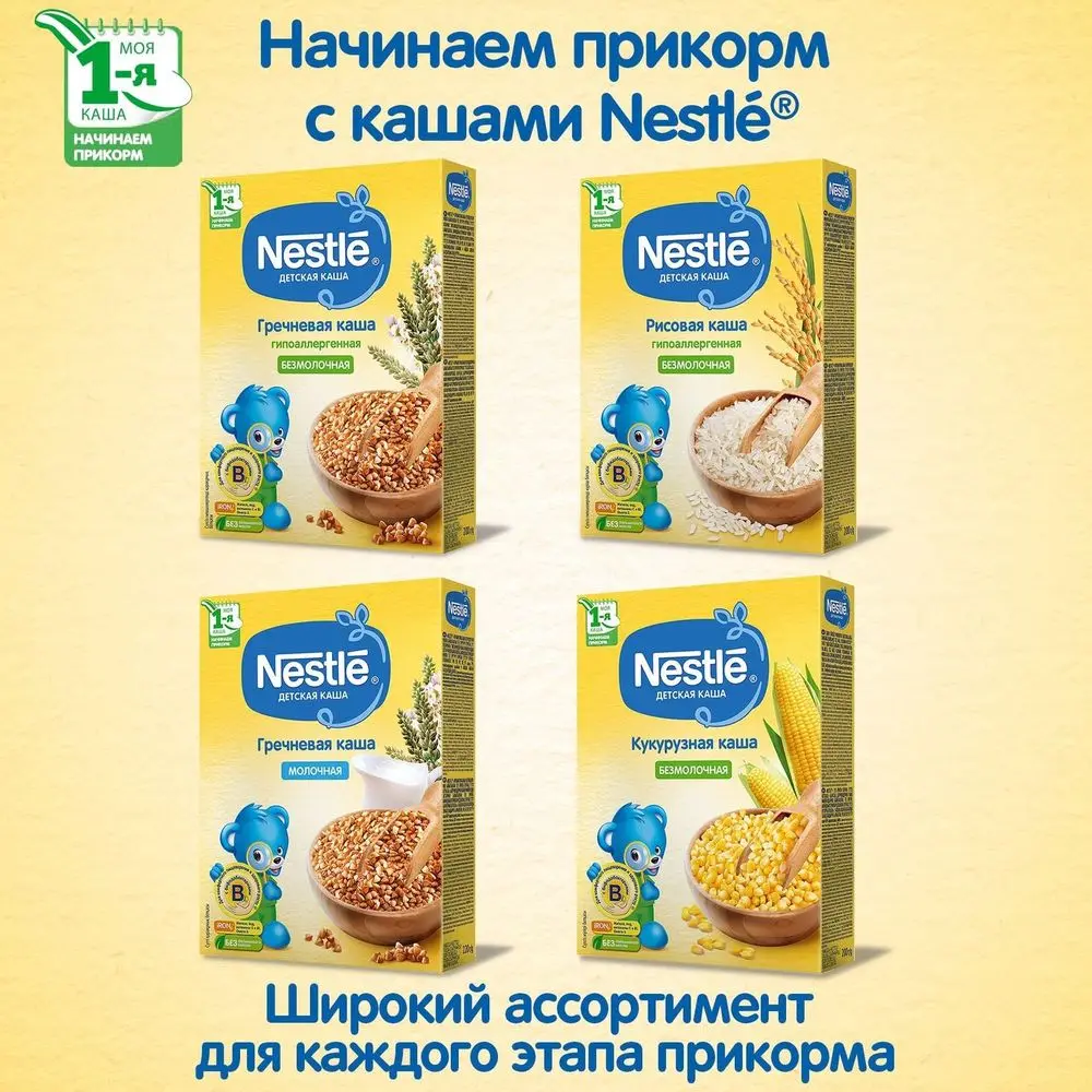 Идеальной пищей для грудного ребенка является молоко матери. Всемирная организация здравоохранения рекомендует исключительно грудное вскармливание в первые 6 месяцев и последующее введение прикорма при продолжении грудного вскармливания. Компания Нестле поддерживает данную рекомендацию. Каша Нестле «Кукурузная безмолочная» - с 5 мес. в соответствии с Законодательством РФ. Требуется консультация специалиста