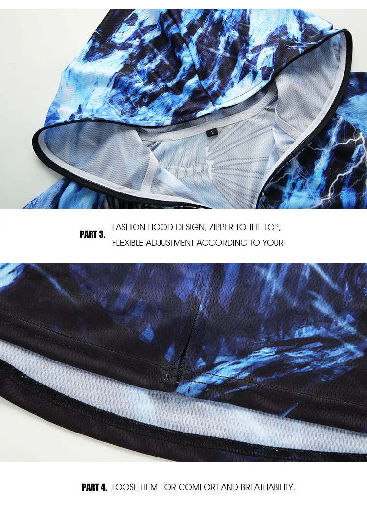 Материал: 100% полиэстер Функция: быстросохнущая, дышащая, защита от УФ-лучей, Влагоотводящая, эластичная, легкая SPF/UPF : UPF 50 + Капюшон: толстовка с капюшоном Пожалуйста, внимательно выбирайте размер в соответствии с нашей таблицей размеров. Не покупайте по привычке! Если вы хотите купить костюм с различными размерами брюк, пожалуйста, оставьте нам сообщение или примечание, например: рубашка 4XL + брюки 2XL.