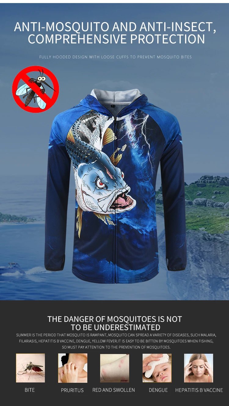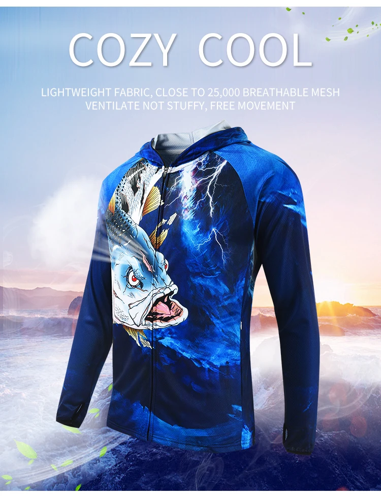 Мужская куртка с длинным рукавом SPATA Fishing jersey, Синяя толстовка с капюшоном, водонепроницаемая быстросохнущая рубашка для рыбалки