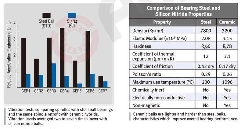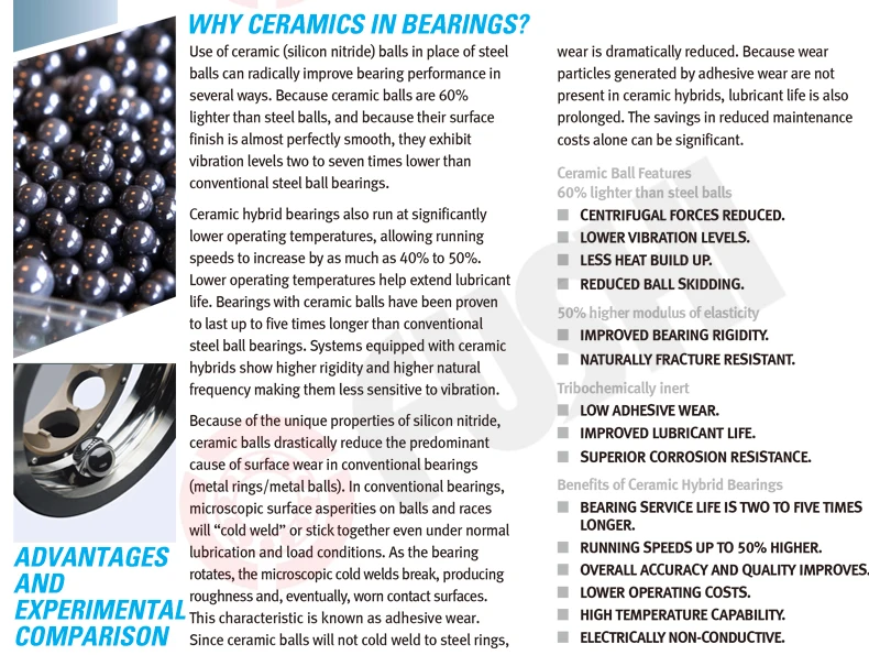 Керамический Гибридный подшипник-это сочетание керамических шариков и подшипниковых качественных стальных колец.
