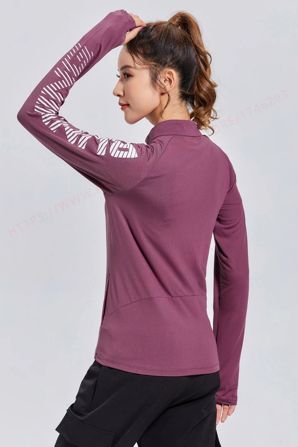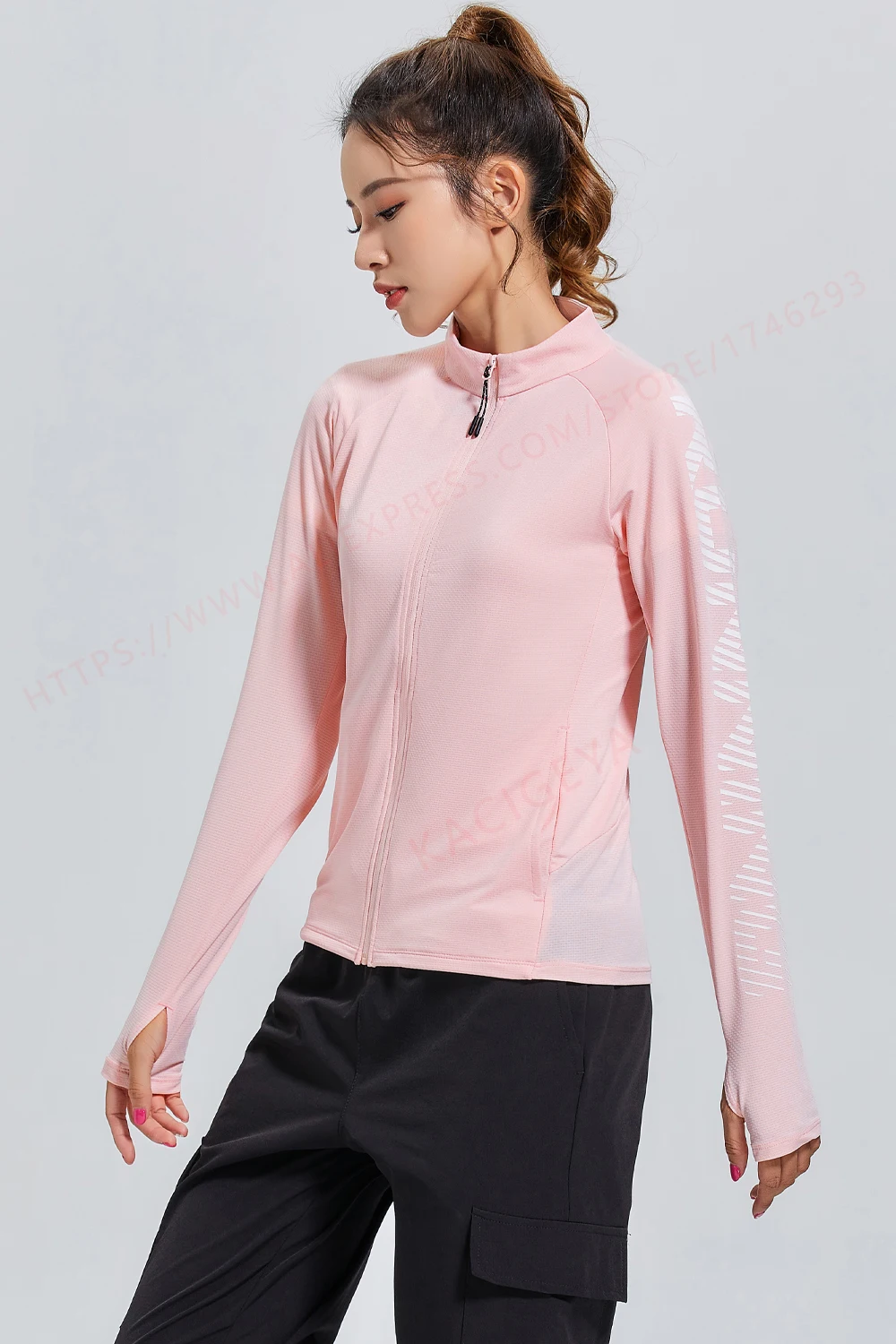 Женские куртки для бега на молнии, тонкая спортивная майка для фитнеса, тренировочная одежда для активного отдыха, тонкие женские рубашки с длинным рукавом для йоги