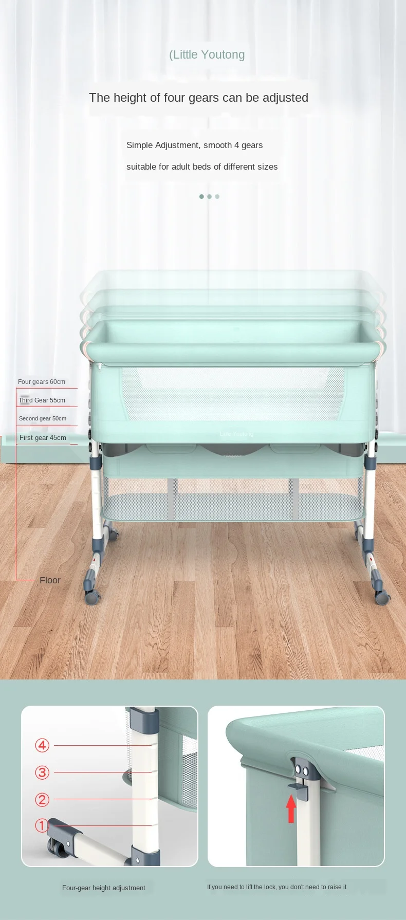 3. Высоту кроватки можно регулировать.