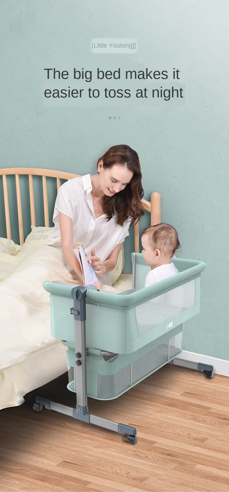 4. В кроватке есть ролики для легкого движения.