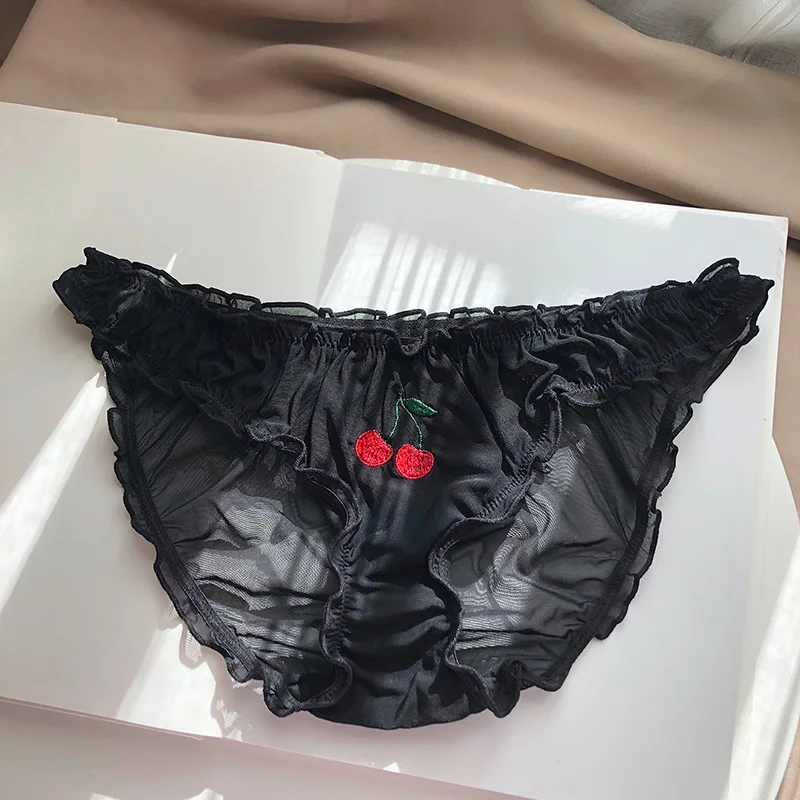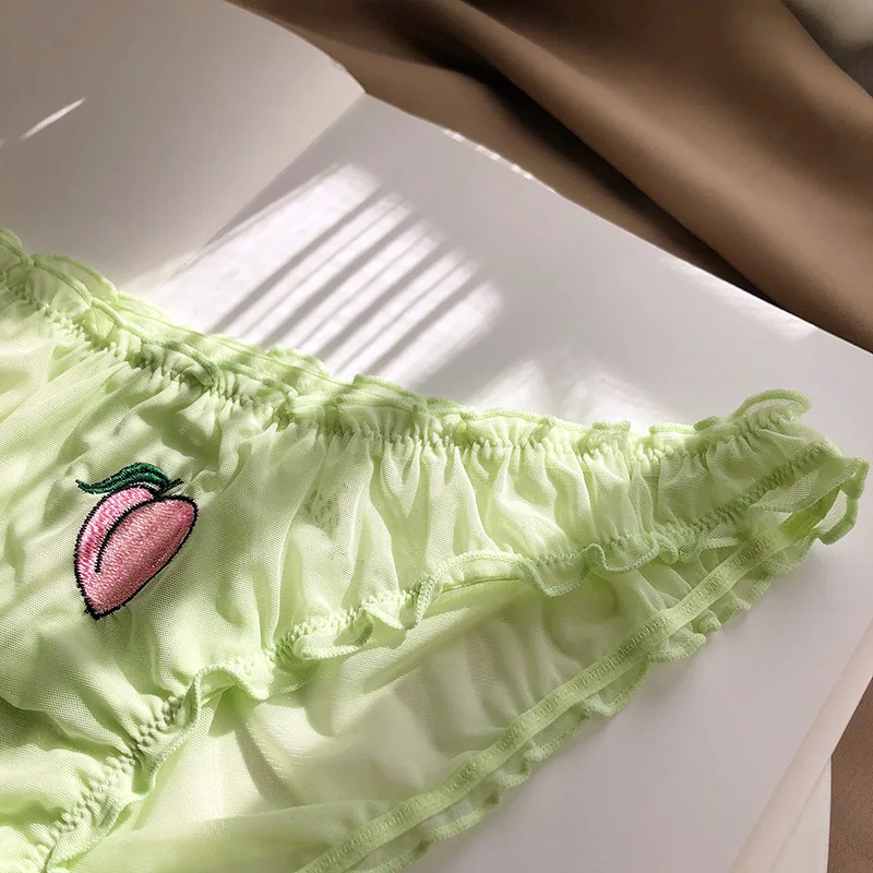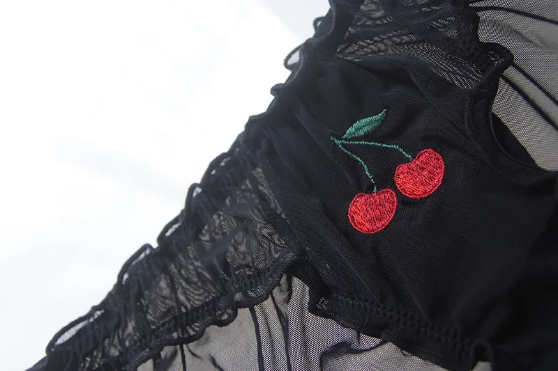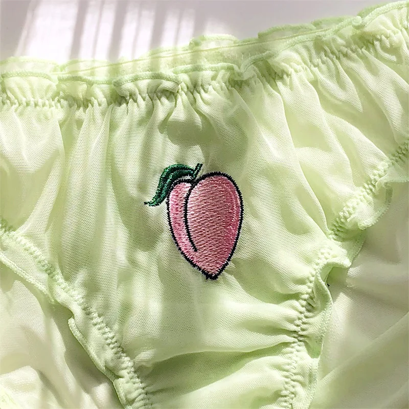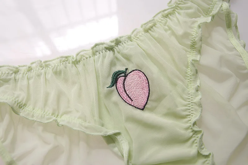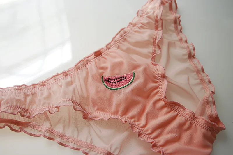 * Милый фруктовый узор с вышивкой * Стиль с низкой талией и умеренным покрытием * Полупрозрачная сетчатая ткань с кружевными деталями создают загадочный вид
