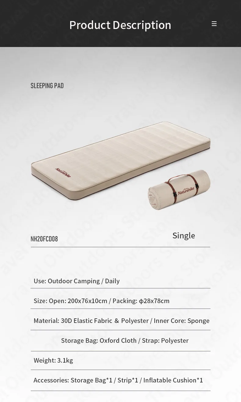 Аксессуары: сумка для хранения * 1/полоска * 1/надувная подушка * 1