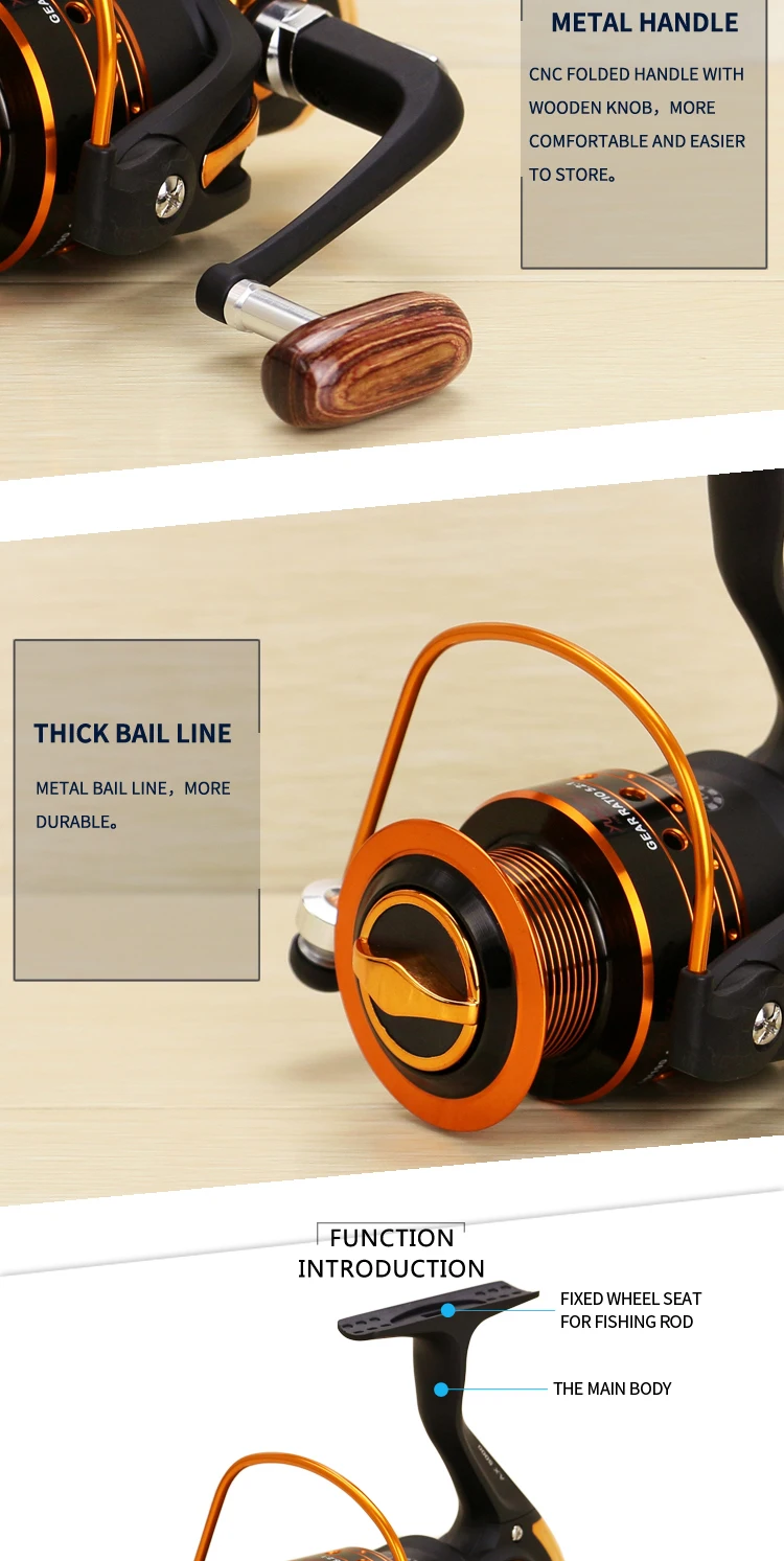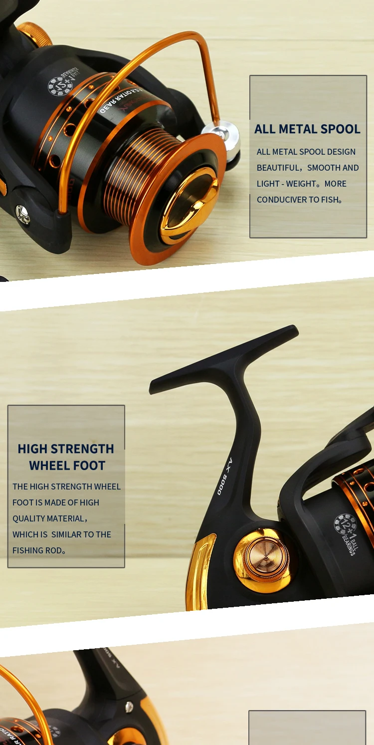 Передаточное отношение: 5,5: 1 Шариковый подшипник: 12BB Ручное извлечение: правая левая рука взаимозаменяемая Материал: металл + инженерный пластик Рекомендуемый диапазон использования: -1000-2000 Серия для приманки/Рок/Плот/короткая телескопическая удочка. -3000-7000 серий для телескопической/длинной морской удочки. Особенности: -Вес светильника: ультратонкий дизайн корпуса, красивый, легкий и удобный светильник. -Кнопка разгрузки: левая и правая регулировка, ручка разгрузки слишком свободная и легко заставляет рыбу бегать, слишком туго, чтобы встретить большую рыбу легко сломать. -Смелое кольцо с низким сопротивлением, не легко встряхнуть при использовании. -Переключатель заднего хода: переключатель заднего хода может управлять передним и задним вращением odf рыболовной катушки. -Складной рокер: складная конструкция на одной пуговице делает хранение и хранение более удобными. -Перекидная рука Левая и правая: в соответствии с привычками пользователя, рокер может быть обменен влево и вправо. -Укрепление предмета: Защита внутреннего оборудования. -Открытая конструкция удаляет лишний материал и облегчает рыбалку.