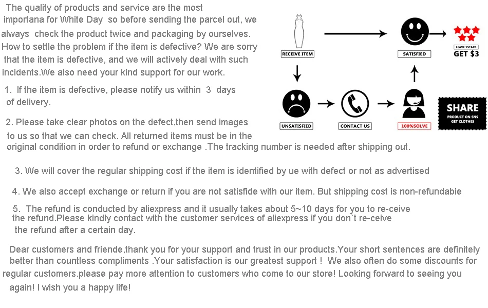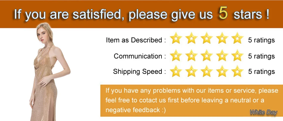 Дорогие друзья, спасибо, что посетили наш магазин. Если у вас есть какие-либо вопросы, пожалуйста, свяжитесь с нами! После того как система успешно обрабатывает ваш платеж в течение 24 часов, заказ на приобретенный вами товар будет организован! Наш бренд WHITE DAY был основан в 2018 году, и мы являемся профессиональным производителем бандажной одежды в Гуанчжоу, Китай. Профессиональный производитель модных вечерних платьев, поддержка OEM / ODM/оптовая/розничная/отправка/Смешанные заказы, 100% гарантия хорошего качества, разумная цена, лучшее предпродажное и послепродажное обслуживание, быстрая доставка! Можем предоставить образцы на основе ваших изображений/эскизов/дизайнерских чертежей и т. д. Вы можете попробовать его, чтобы проверить наше качество. Мы всегда с нетерпением ждем возможности предоставить вам лучший опыт покупок и установить долгосрочные дружественные отношения сотрудничества с вами. Большое спасибо!