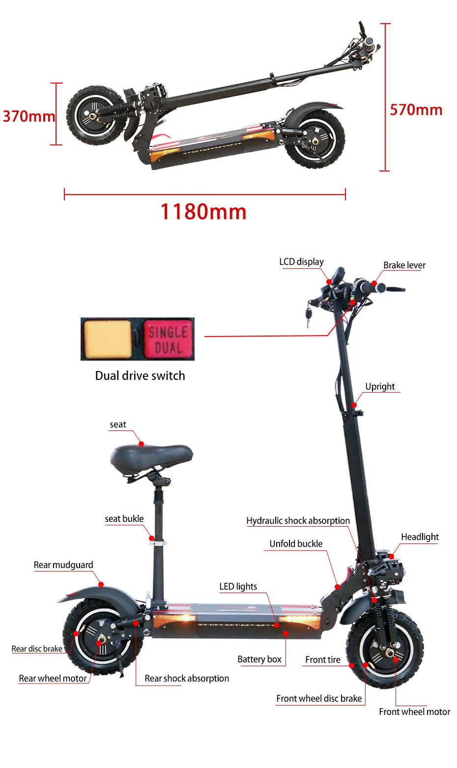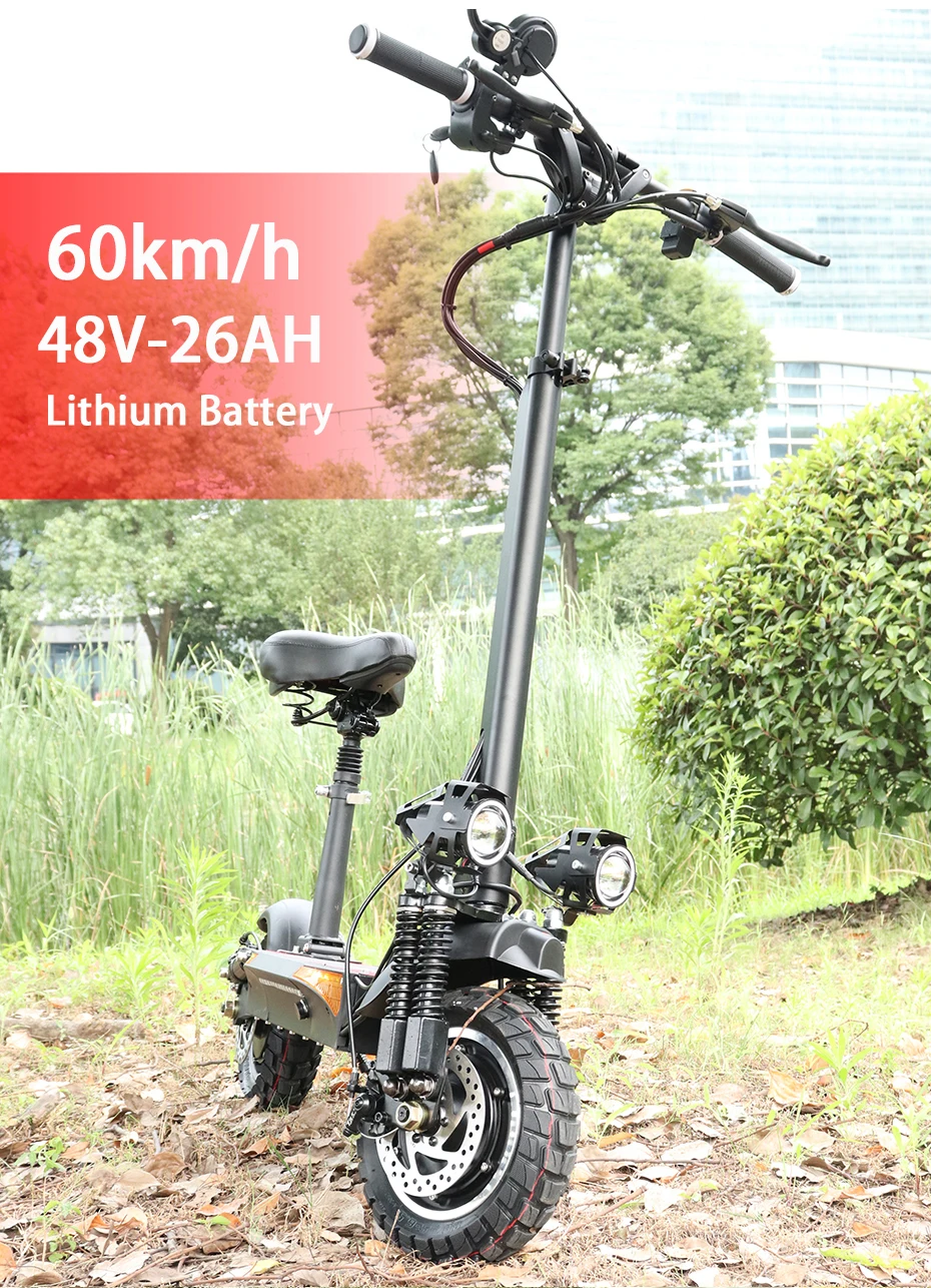 JS 60 км/ч Складной электрический самокат с сиденьем 11 дюймов двойной-приводной двигатель 48V 1600W внедорожный Электрический скейтборд 65 км/ч Высокая Скорость e скутер
