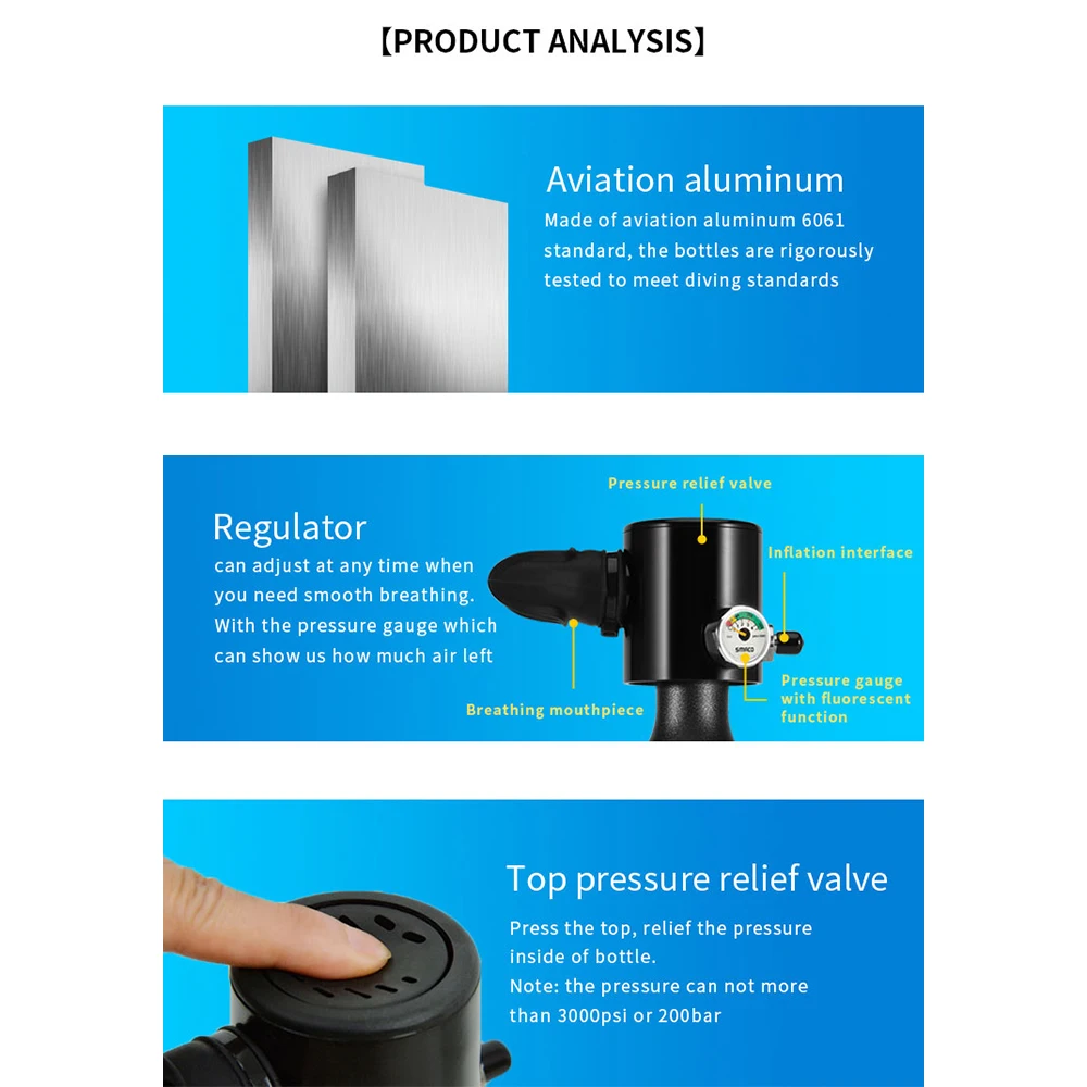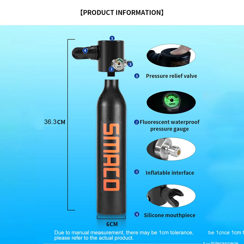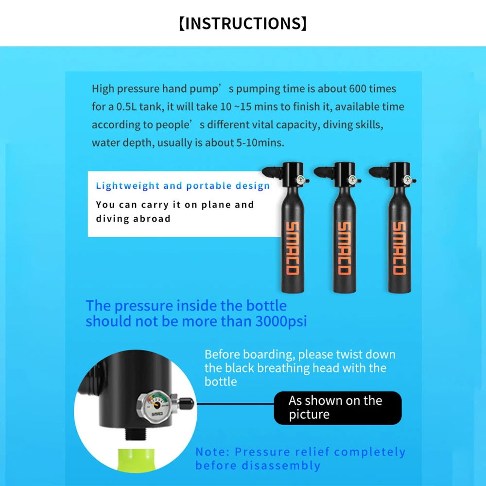 SMACO Дайвинг оборудование для подводного плавания дыхательный аппарат портативный бак с кислородом скубы с 8 минут, 0,5 л