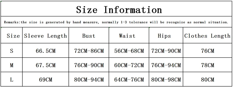 Примечание: возможны отклонения в 1-3 см вследствие измерений вручную. Все измерения в см, пожалуйста, обратите внимание, что 1 см = 0,39 дюйма. Все размеры соответствуют азиатским размерам, пожалуйста, выберите больший размер или проверьте информацию о размерах, спасибо!