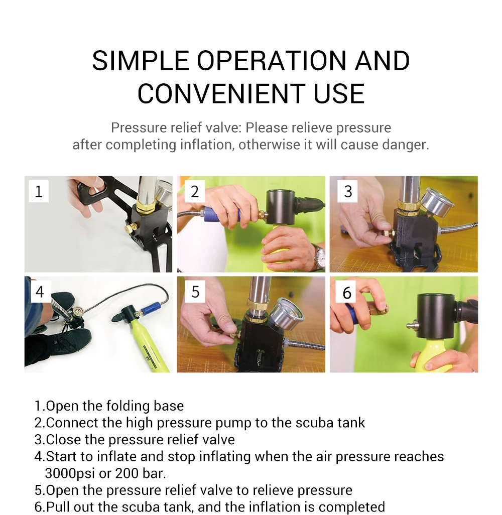 1. Специальный насос высокого давления (≥ 3000 psi) ручной насос. Пожалуйста, обратите внимание, если вам нужно надуть резервуар, чтобы полностью состояние, вы должны нажать на приложение насоса. 600 раз.