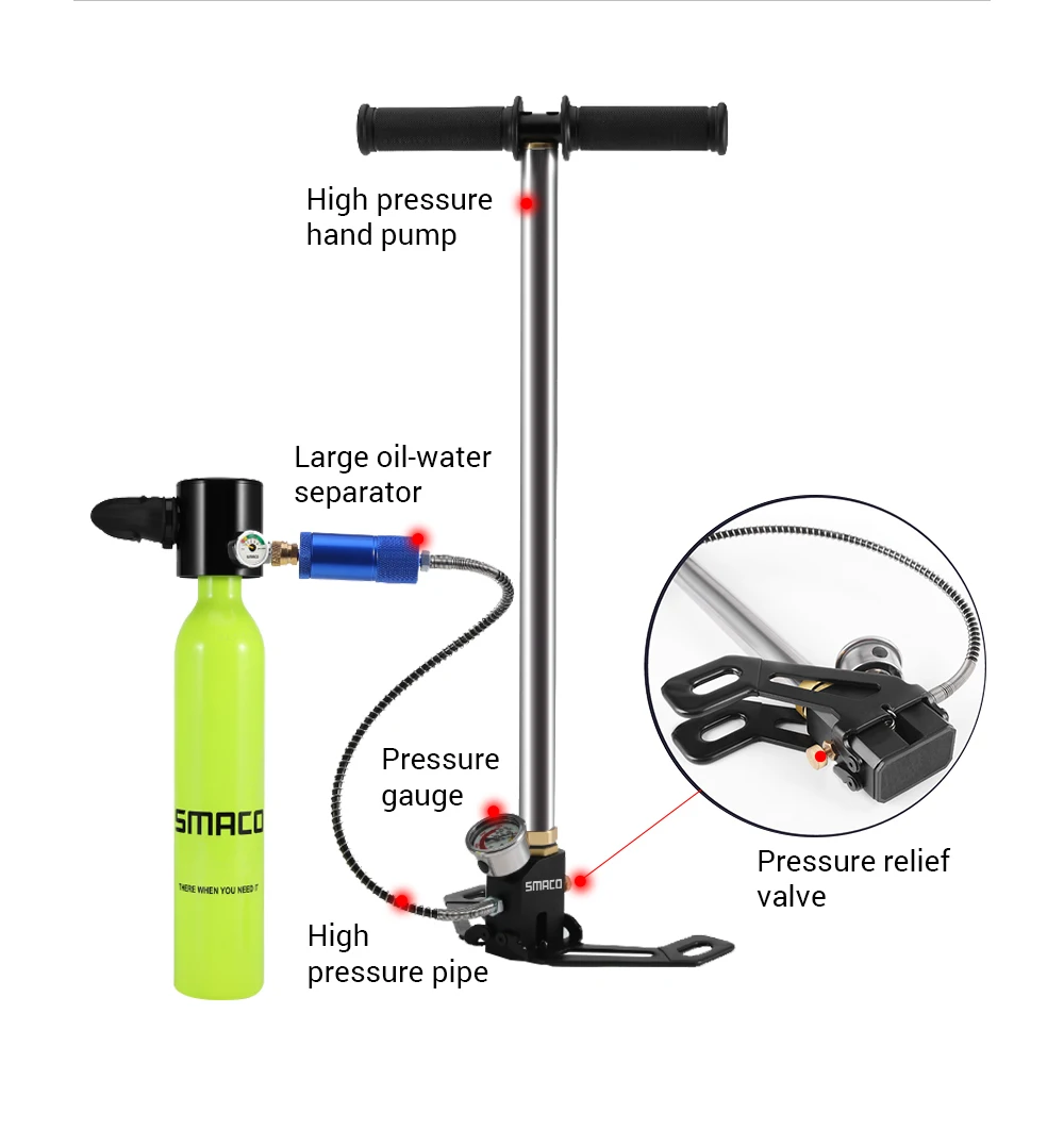 SMACO Дайвинг кислородный баллон насос ручной насос высокого давления воздушный Дайвинг ручной насос мини компрессор