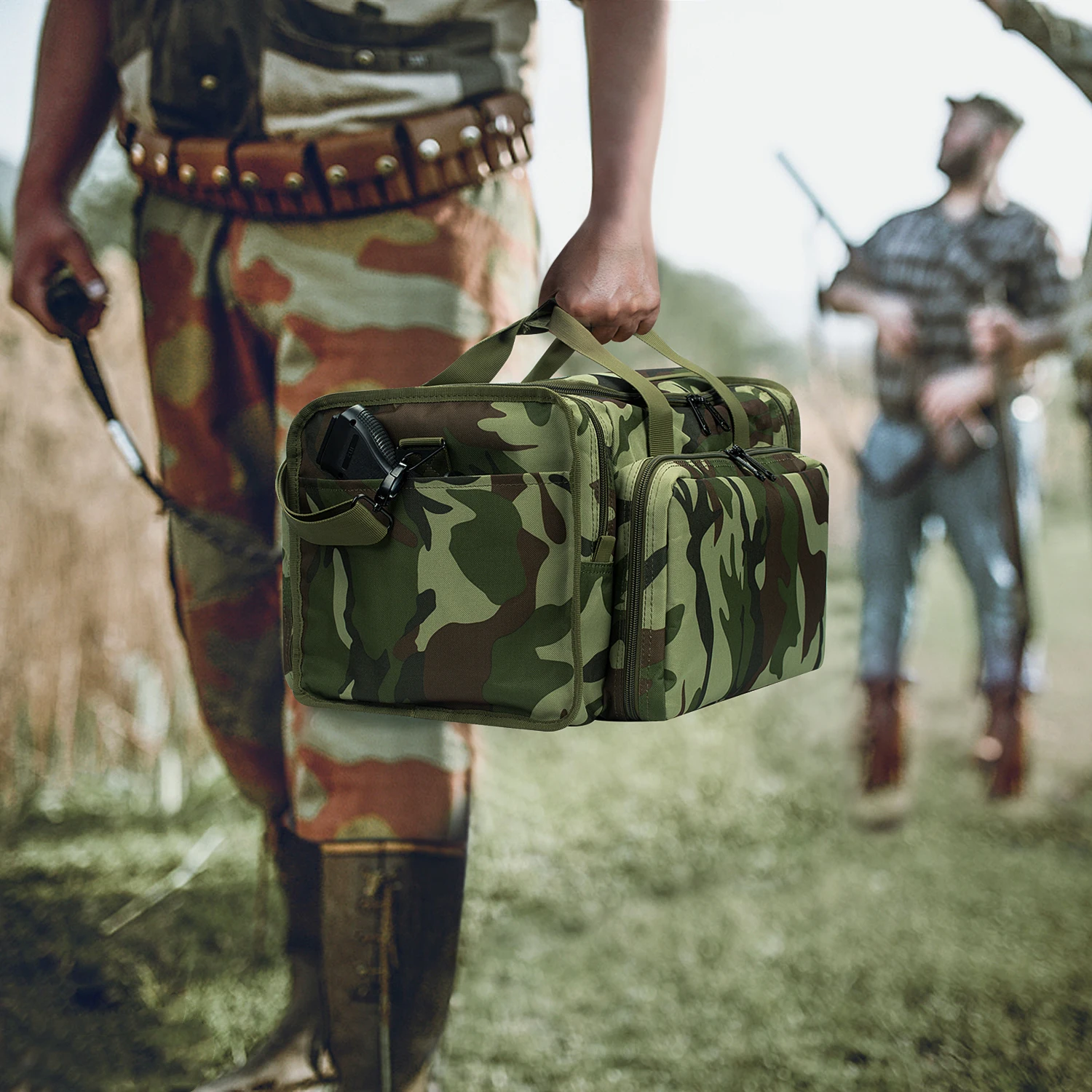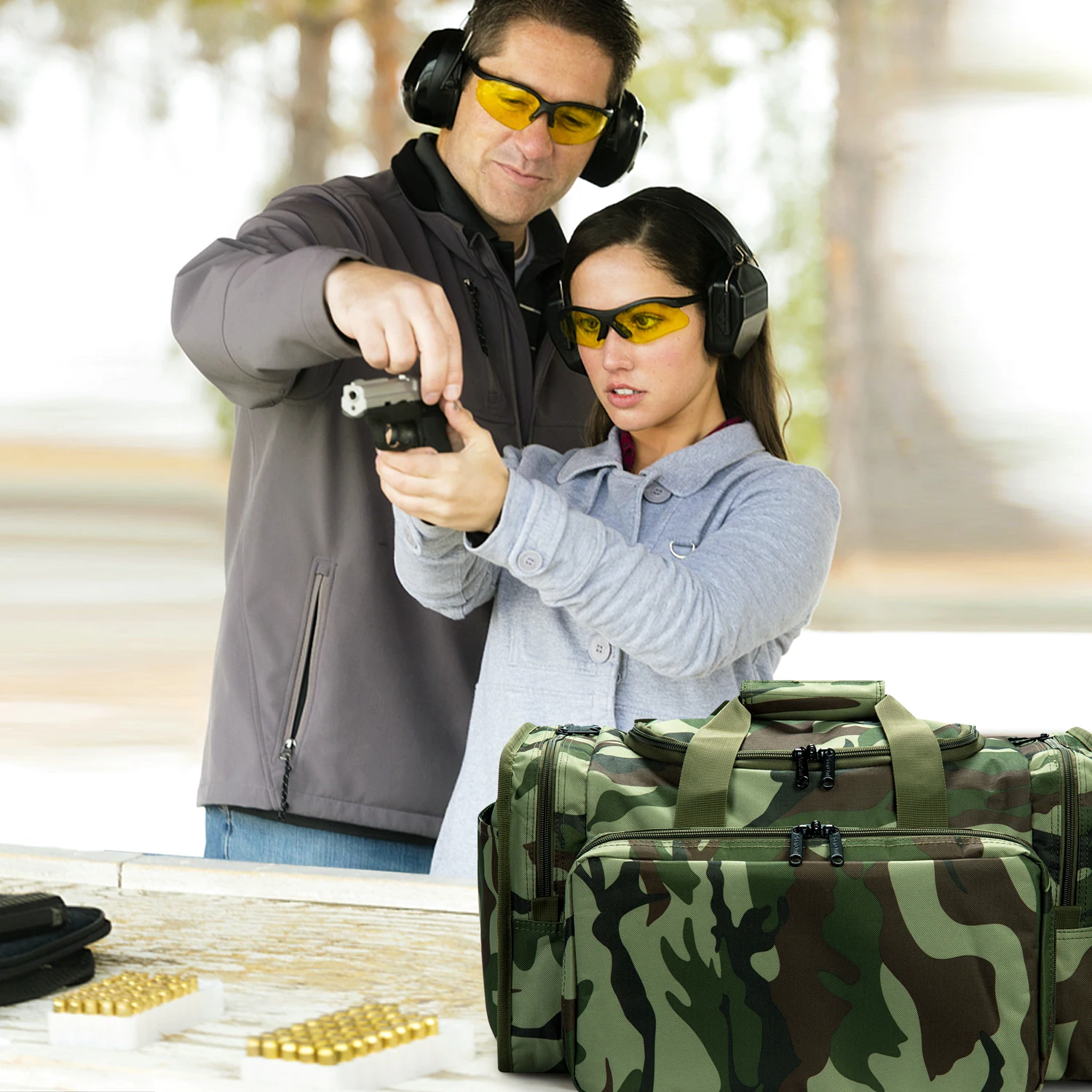 Наши тактический пистолет сумки предоставить множество отсеков, сумки и карман пространство для пистолетов, журналы, патроны, earguards, стрелялки, очки, защитные очки с фокусирующей оптикой для наблюдения точечных целей, оружие, аксессуары и боеприпасы для хранения. Лучше, чем другие сумки-чехла для нашей пистолет Диапазон Сумка-это ваш лучший выбор.