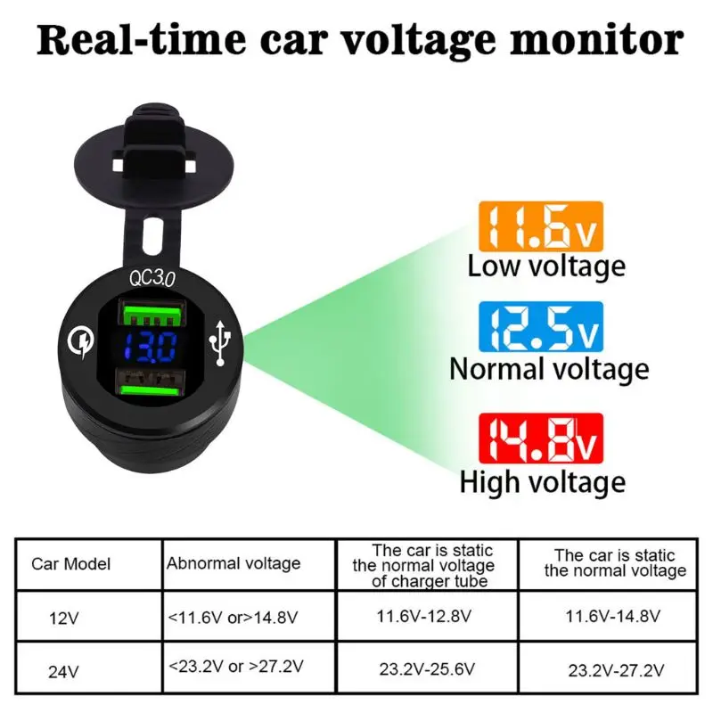 1 X Двойной USB Вольтметр для зарядного устройства мотоцикла QC3.0.
