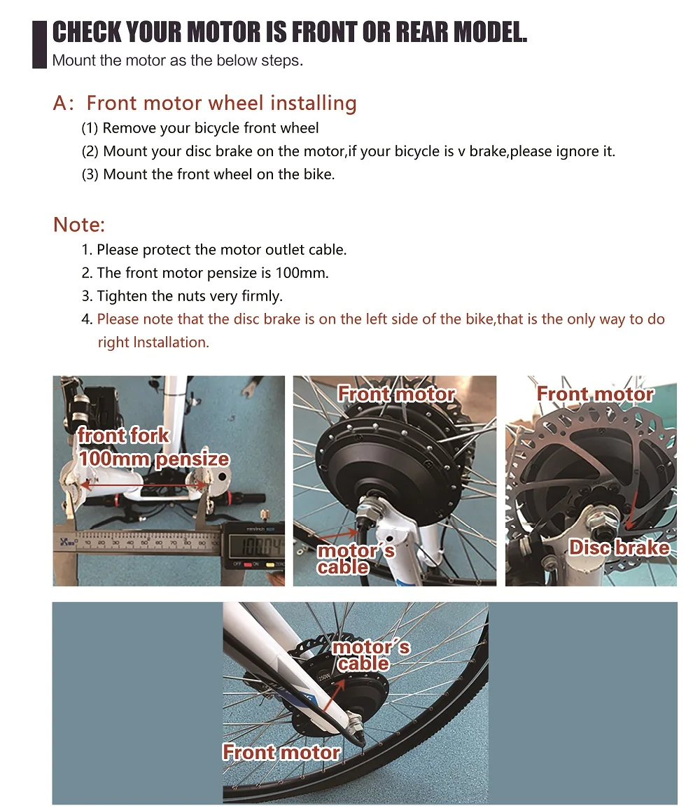 Набор для преобразования электрического велосипеда имеет определенные требования к раме велосипеда. Передняя вилка рамы велосипеда должна быть открыта 100 мм.Задняя вилка рамы велосипеда должна быть открыта 135-142 мм. Перед покупкой, пожалуйста, измерьте размер передней вилки. Если установка не в состоянии из-за ошибки при покупке, мы откажемся от возврата, пожалуйста, поймите, спасибо.