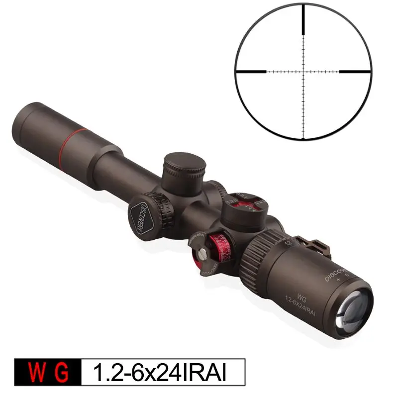 Название бренда: Discovery Тип: винтовка Номер модели: обнаружение WG 1,2-6X24IRAI Функция: объектив Увеличение: 1,2-6 Длина: 25,4 см Трубка Диаметр: 25,4 см Сетка: Проводная Регулирующая переменная: 1KD 1/4MOA (выше 100YDS) Вес: 440 г Предмет: 24 мм Освещение: красный и зеленый (по 5 решеток)