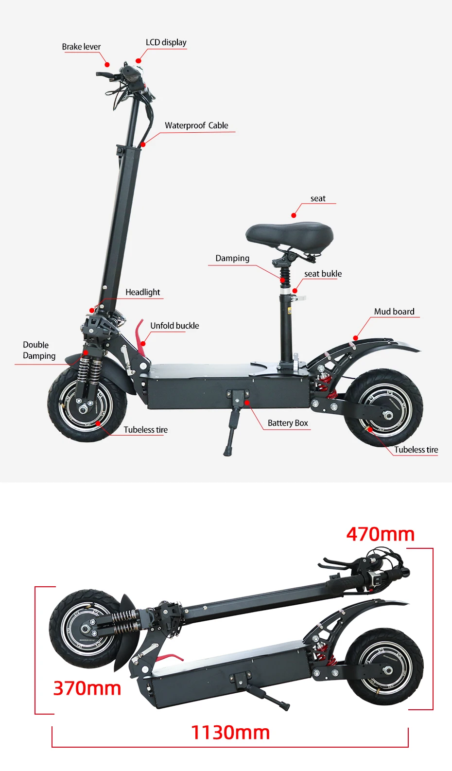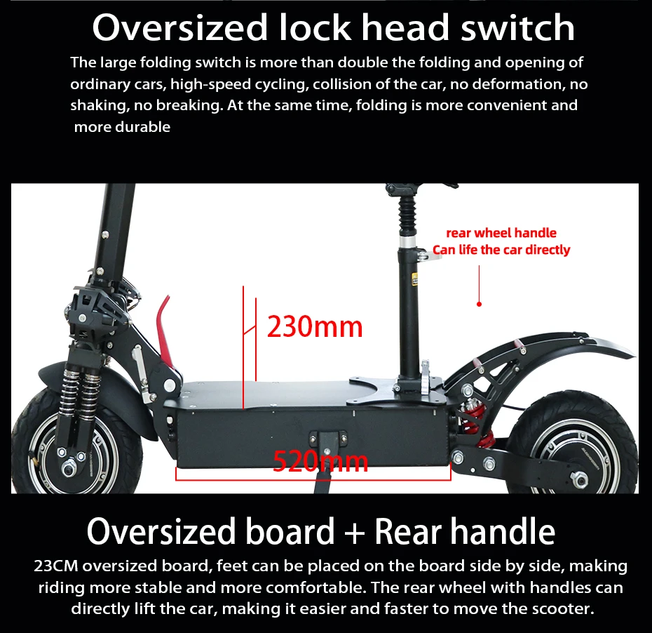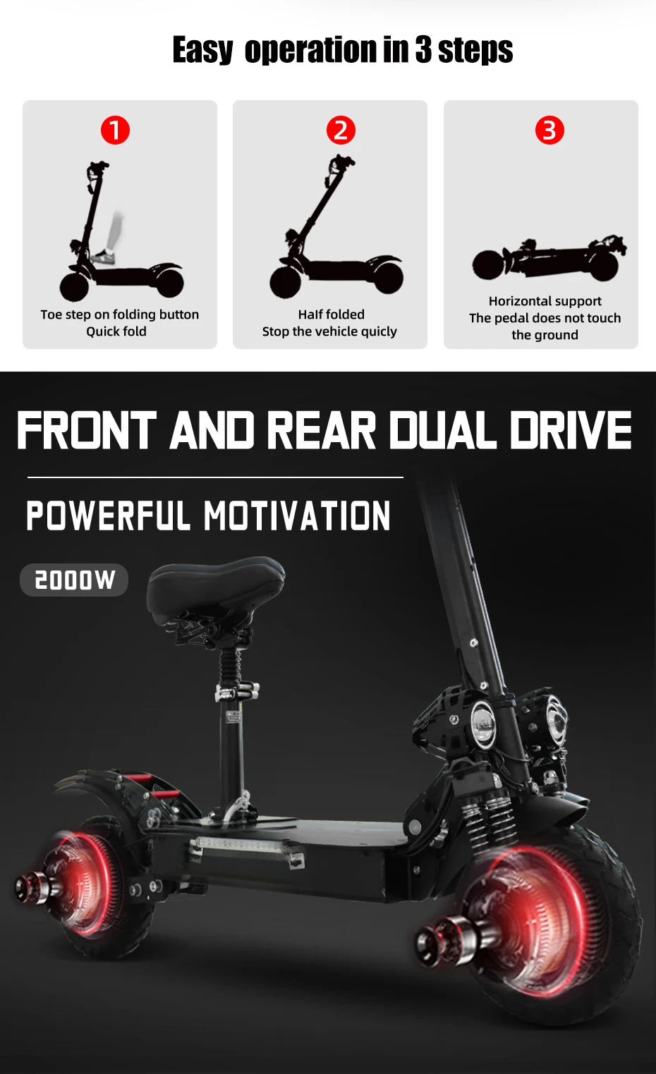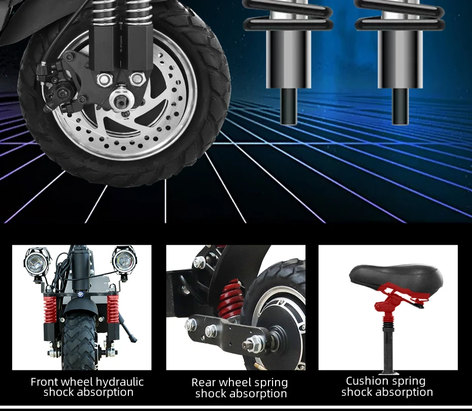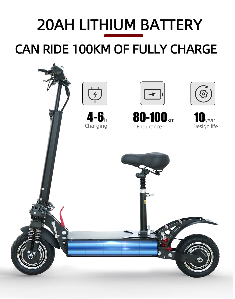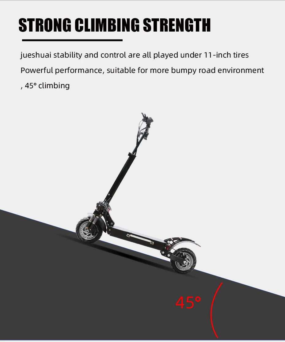 1. Мощный конфигурации: 60V 3200W/2600 Вт мотор шпинделя, 20Ah 60V литиевая батарея, двойной амортизацией & 11 "Пневматические шины обеспечивают отличное амортизацией и функцией анти-скольжения. 2. Время зарядки составляет около 6-8 часов, Максимальный ход может достигать 80 миль. Эффективная система демпфирования адаптирует этот электрический скутер, адаптируясь к дорогам разных местностей. 3. Внешний вид: яркие фары обеспечивают безопасность езды в темноте, съемные сиденья дадут вам различные ощущения от езды, Благодаря механизму быстрого складывания обеспечивается складывание/раскладывание за секунды, что делает его идеальным портативным складным электрическим скутером. 4. Внимание и напоминание: характеристики самоката могут варьироваться в зависимости от веса или дорожного состояния, время работы может варьироваться в зависимости от условий езды, климата и/или надлежащего обслуживания. У Jueshuai есть профессиональная техническая поддержка, если у вас есть какие-либо вопросы или проблемы, отправьте нам сообщение.