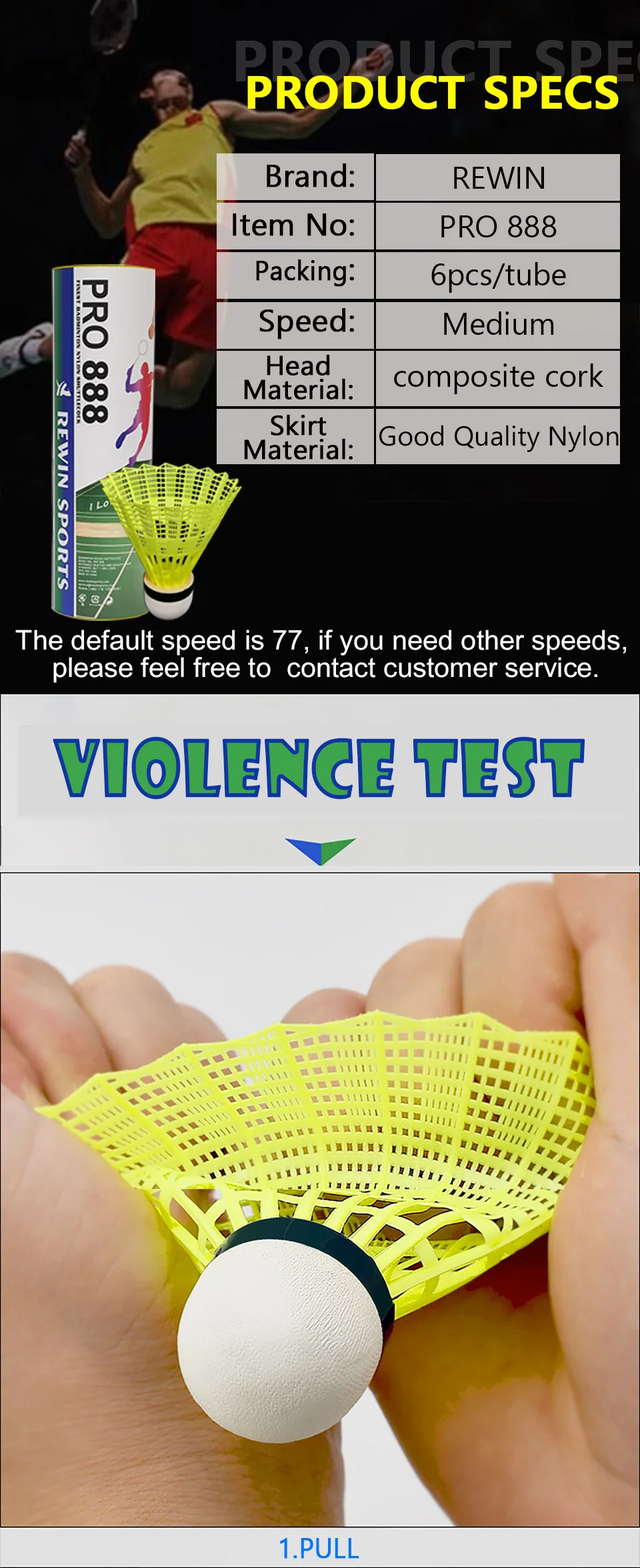Название продукта: | Pro888 нейлоновый Волан хорошего качества с композитной пробкой |