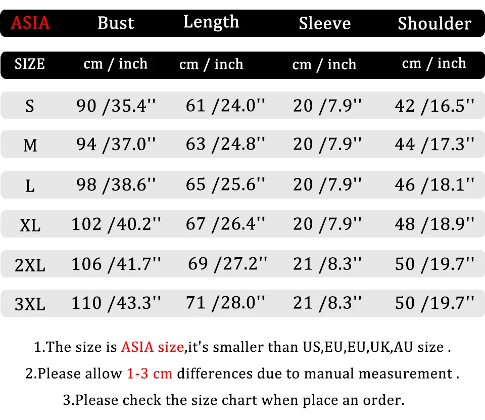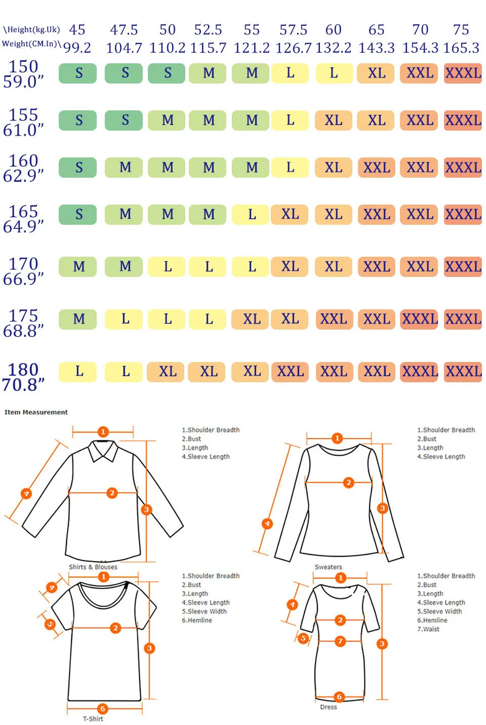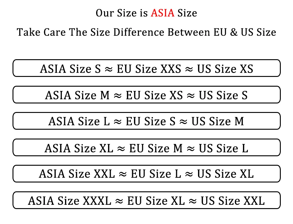 1. РазмерАзиатский размерРазмер меньше, чем размер США, ЕС, ЕС, Великобритании, Австралии. 2. Пожалуйста, позвольте1-3 смРазличия из-за ручного измерения. 3. Пожалуйста, проверьте таблицу размеров при размещении заказа. |
