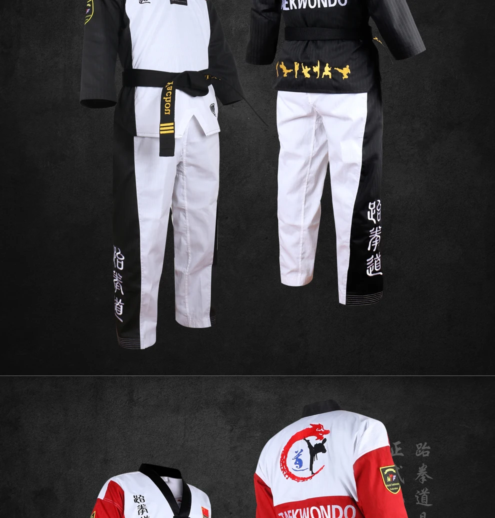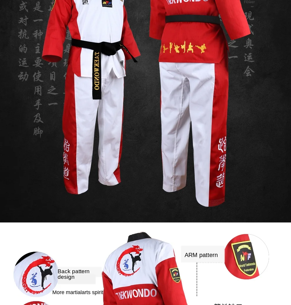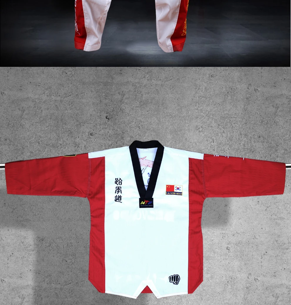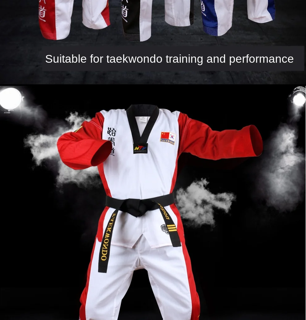Высококачественная цветная униформа для тхэквондо, тренировочный костюм для тхэквондо, костюмы для взрослых, детей, подростков, комплекты одежды с вышивкой Poomsae 1. Размер: M,L,XL,XXL 2. Материал: хлопок + полиэфирное волокно 3. Преимущества: устойчивость к растягиванию, не деформируется, не скатывается, не садится, прочный, устойчив к стирке, ткани после лечения антибиотиками. 4. Этот раздел одежды унисекс