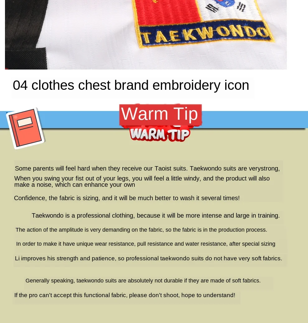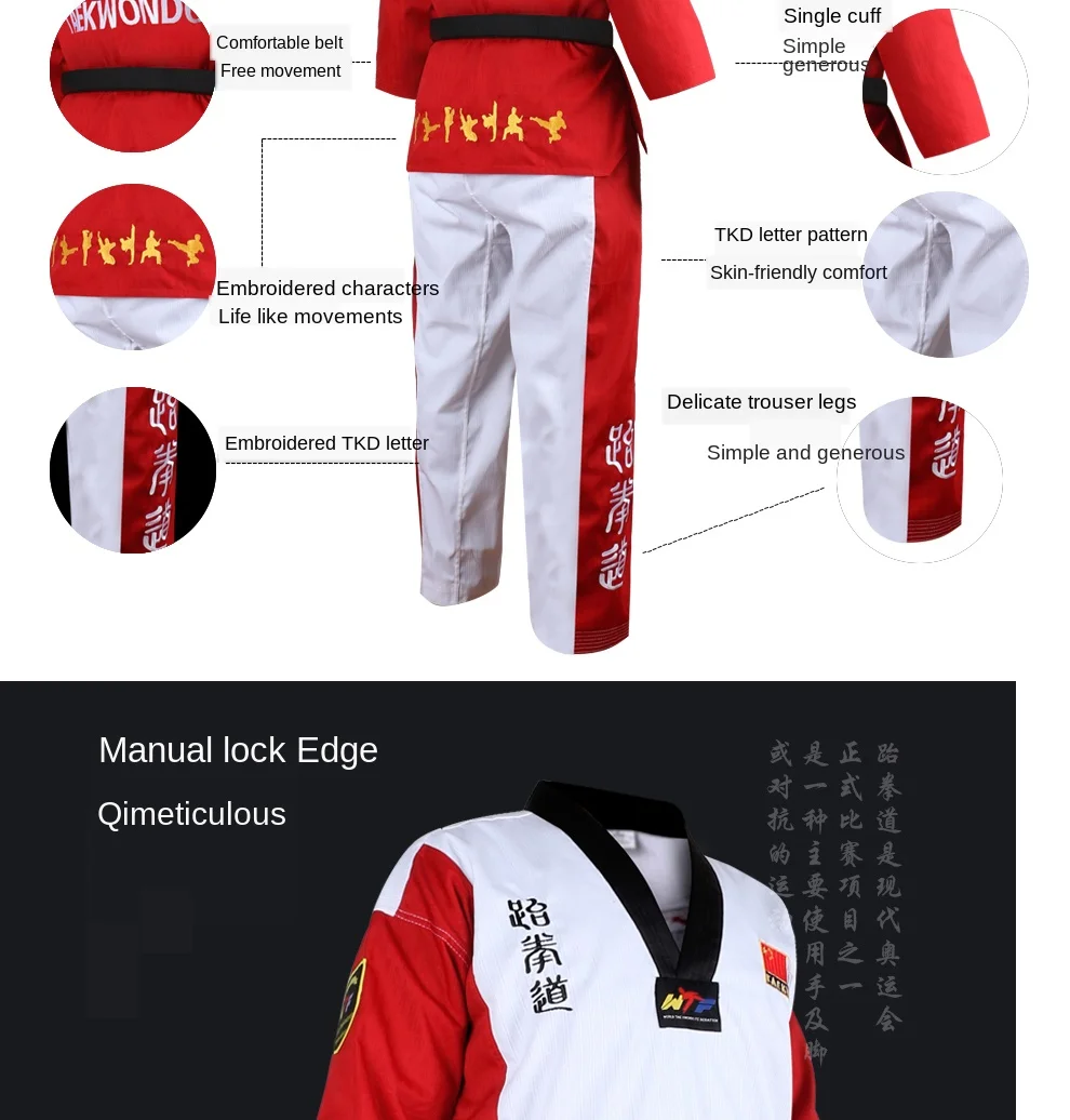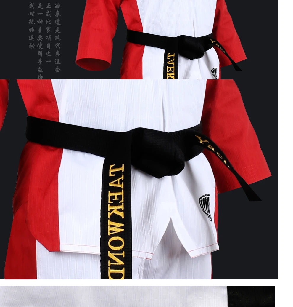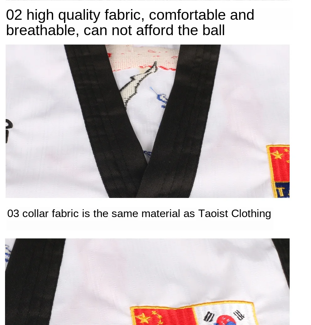 Высококачественная цветная униформа для тхэквондо, тренировочный костюм для тхэквондо, костюмы для взрослых, детей, подростков, комплекты одежды с вышивкой Poomsae 1. Размер: M,L,XL,XXL 2. Материал: хлопок + полиэфирное волокно 3. Преимущества: устойчивость к растягиванию, не деформируется, не скатывается, не садится, прочный, устойчив к стирке, ткани после лечения антибиотиками. 4. Этот раздел одежды унисекс