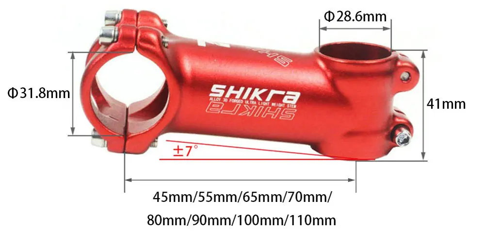 Вынос велосипеда SHIKRA, вынос горного шоссейного велосипеда 7 градусов Сверхлегкий вынос руля 31,8 мм, вынос руля 45 55 65 70 80 90 100 110 мм, вынос велосипеда