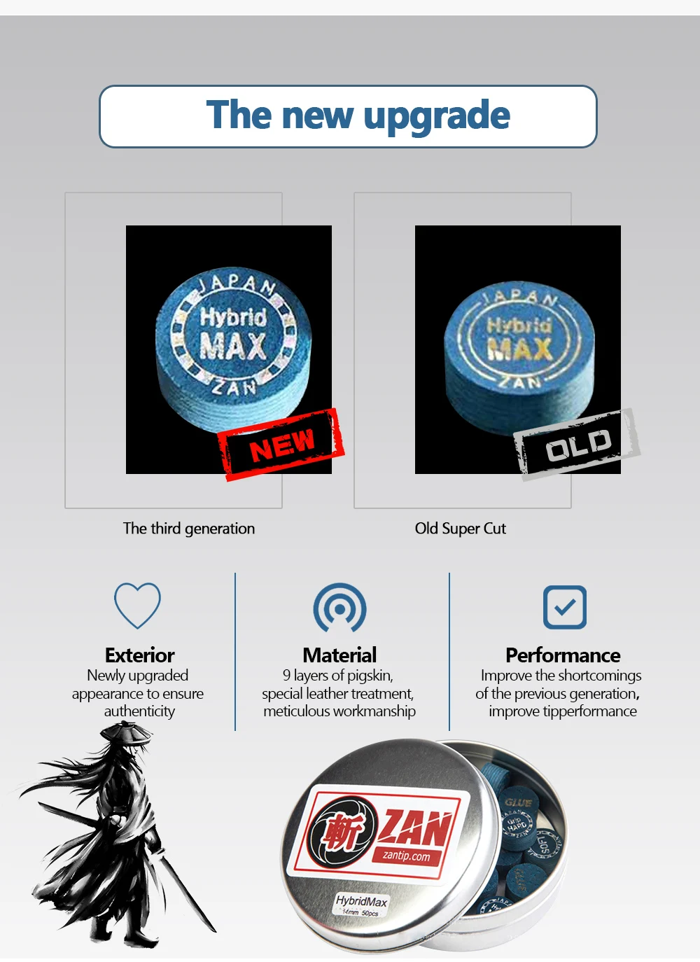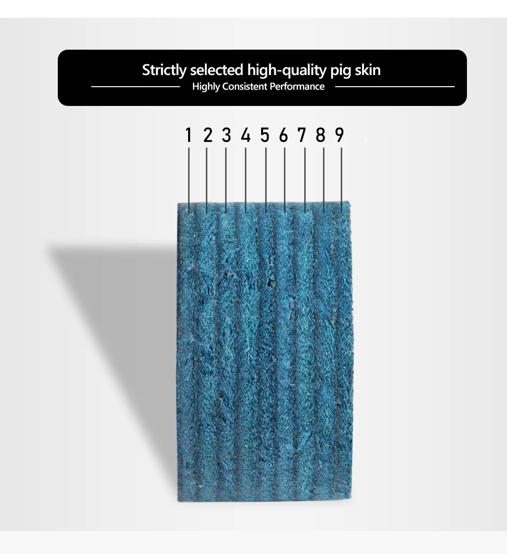 1. Хорошая эластичность, настоящее чувство отзывы 2. 9 слоев свиной кожи, специальная обработка кожи, тщательная работа 3. Диаметр 14 мм подходит для различных cue 4. Новый улучшенный внешний вид для обеспечения подлинности