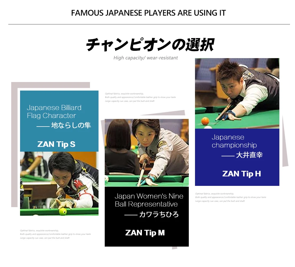 Название: японский zan диаметр наконечника: 14 мм Тип: Обычный ZAN(H/S/M) Супер ZAN(H/S/M) Костюм для: бильярдный кий