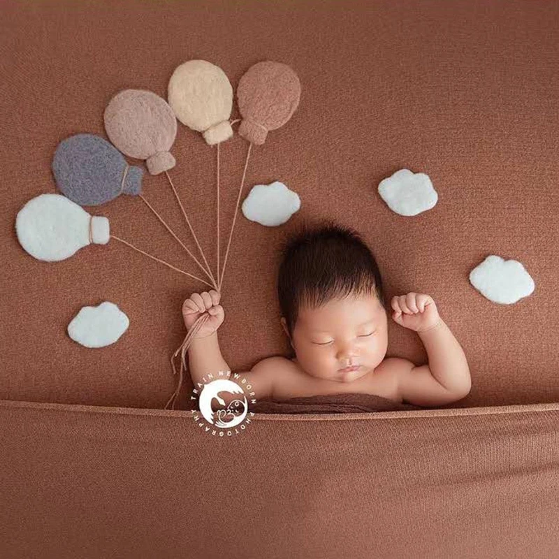 Потрясающие реквизиты для детской фотосъемки, шерстяные войлочные овцы, облака или воздушные шары, которые являются дополнительными.