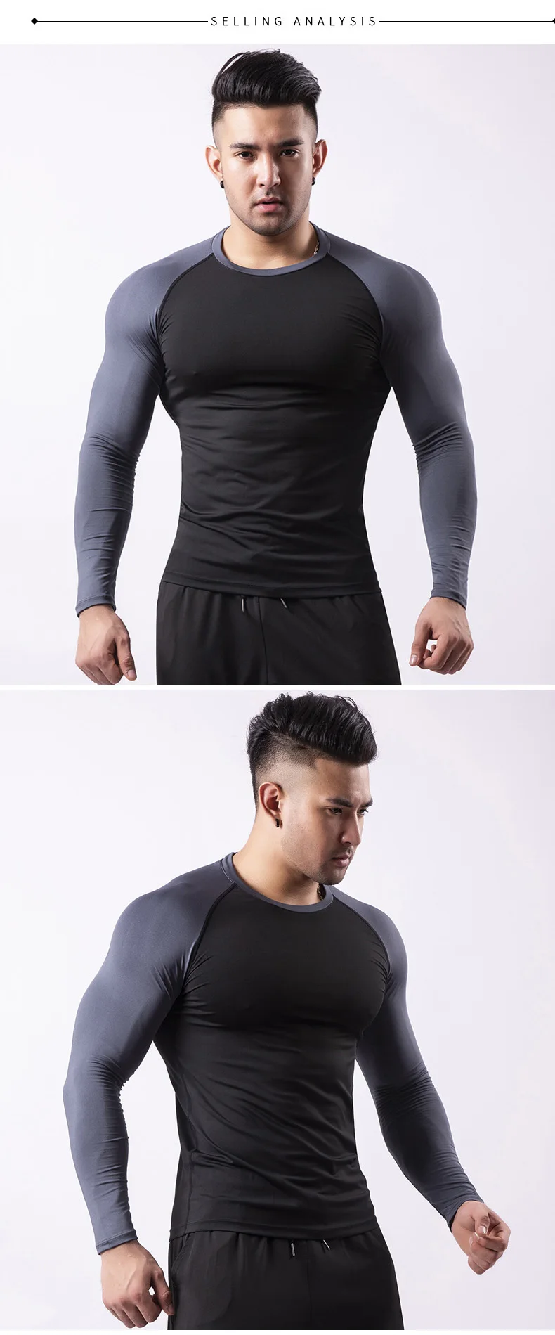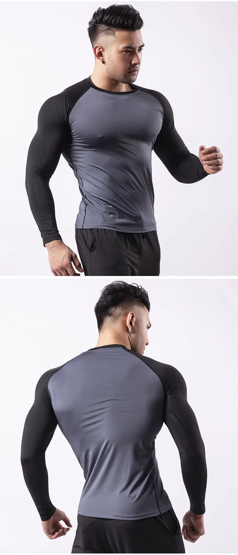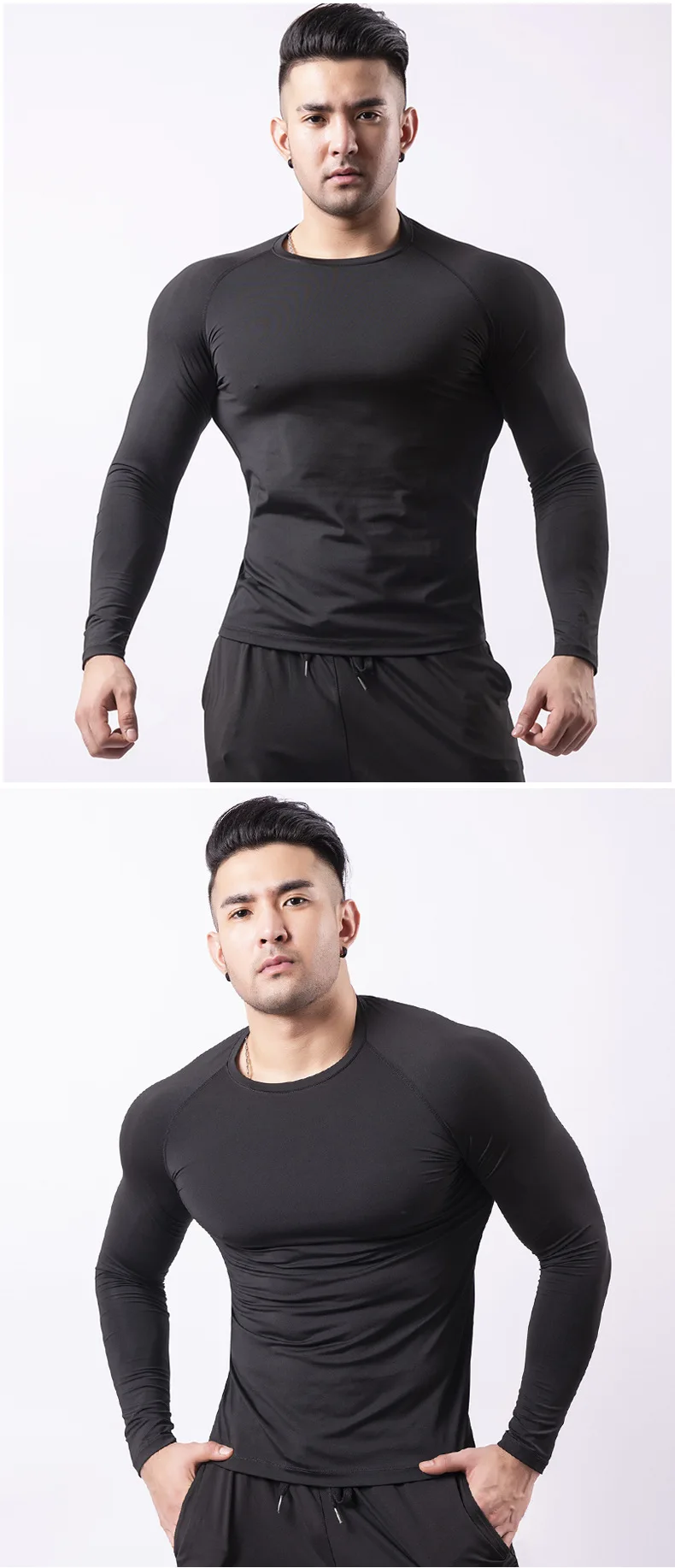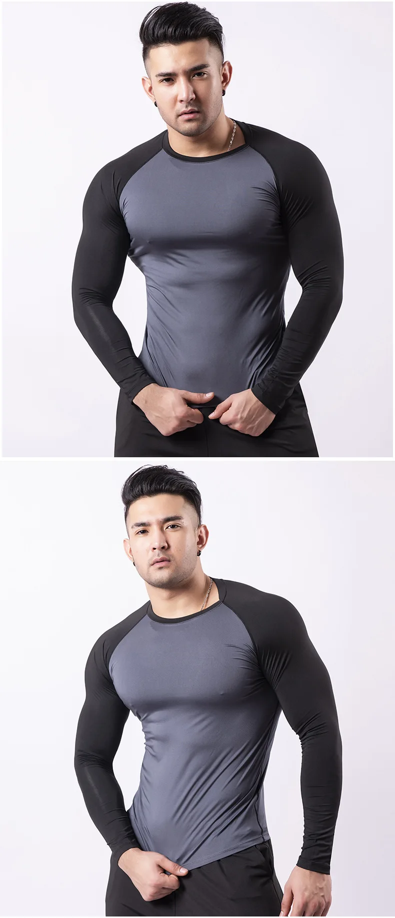 Новинка 2020, быстросохнущая компрессионная Спортивная футболка для мужчин с длинным рукавом, облегающая Спортивная футболка для фитнеса, Спортивная футболка для бега, Мужская Рашгард