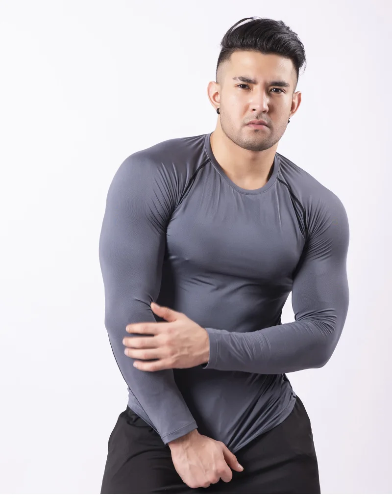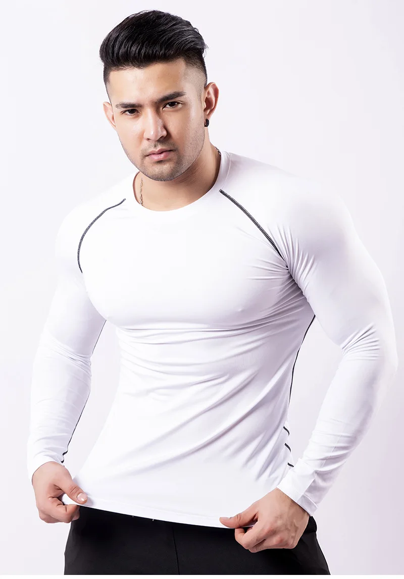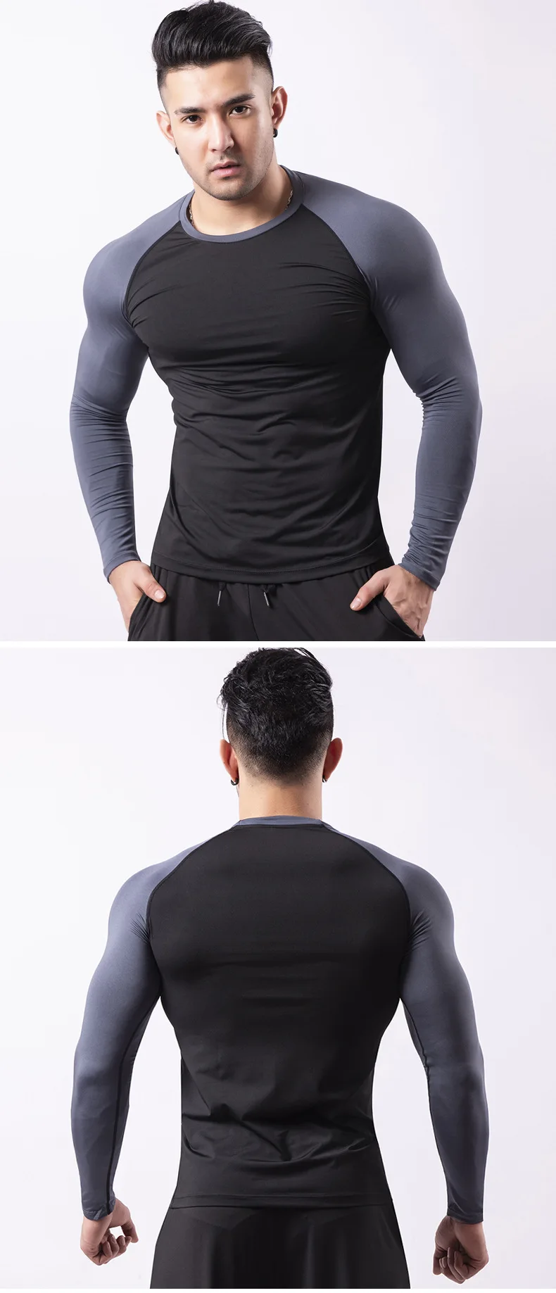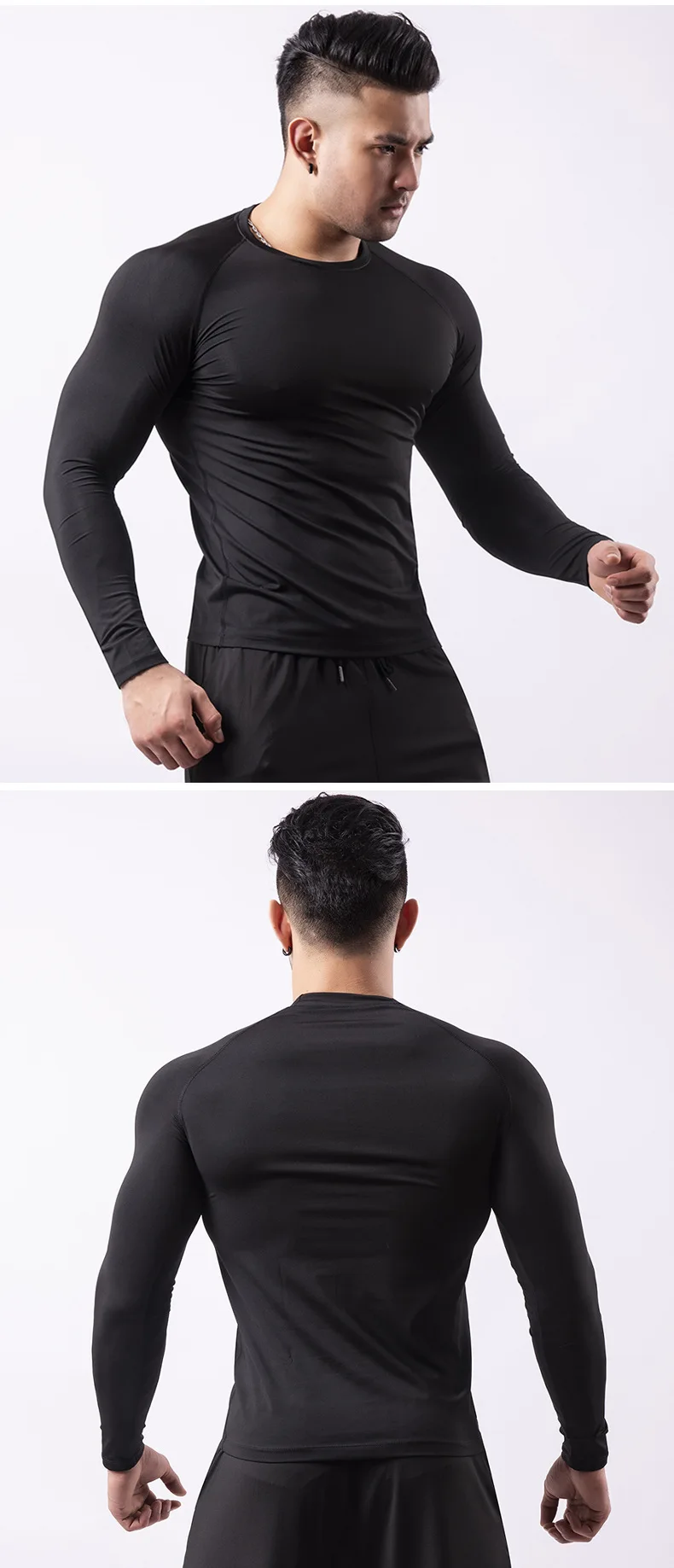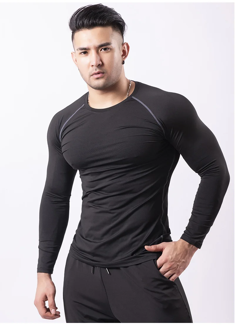 Новинка 2020, быстросохнущая компрессионная Спортивная футболка для мужчин с длинным рукавом, облегающая Спортивная футболка для фитнеса, Спортивная футболка для бега, Мужская Рашгард