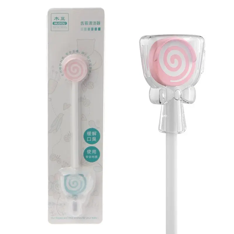 Это очиститель языка. Красочное оформление «леденец» состоит из резины TPR + PP (ручка), которая мягкая и гладкая.