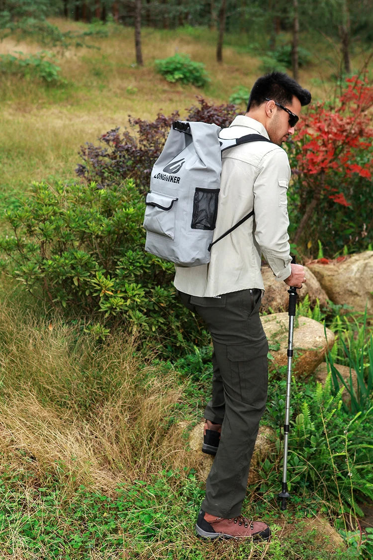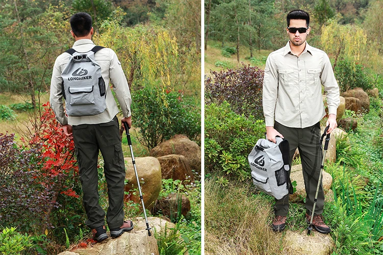 ** 500 брезент из ПВХ:-изготовлен из сверхпрочного брезента, благодаря чему легкий водонепроницаемый складной рюкзак. Остается водонепроницаемым и остается невероятно гибким при высокой прочности. Он может справиться с любым, чем вы бросите.