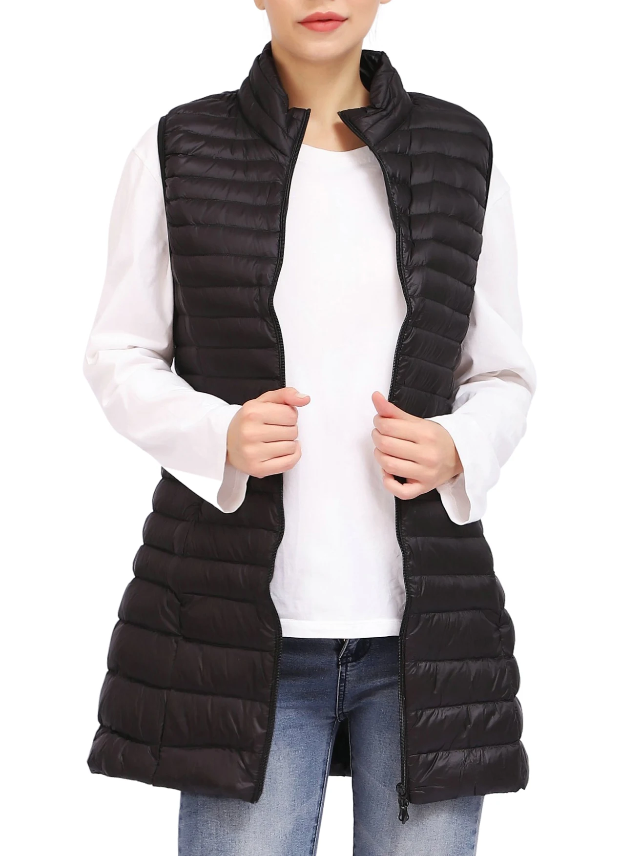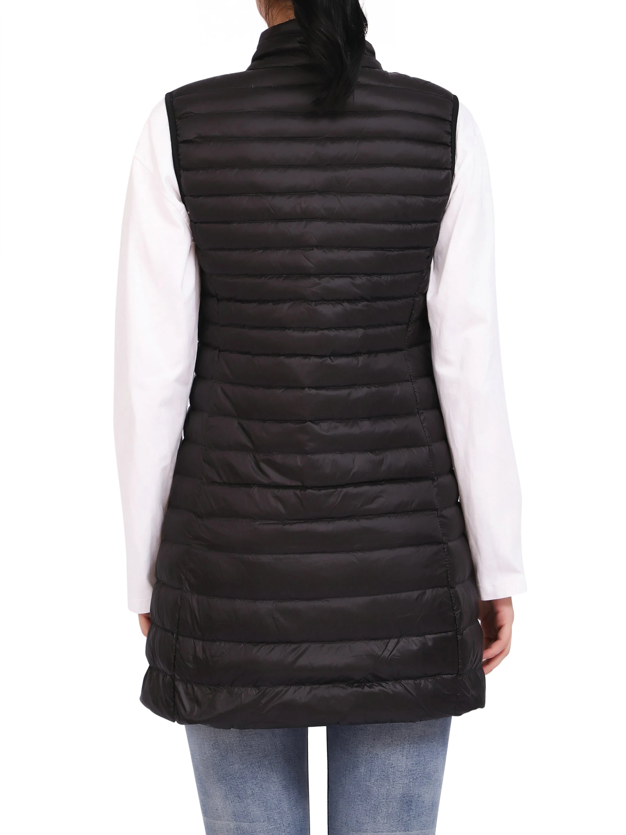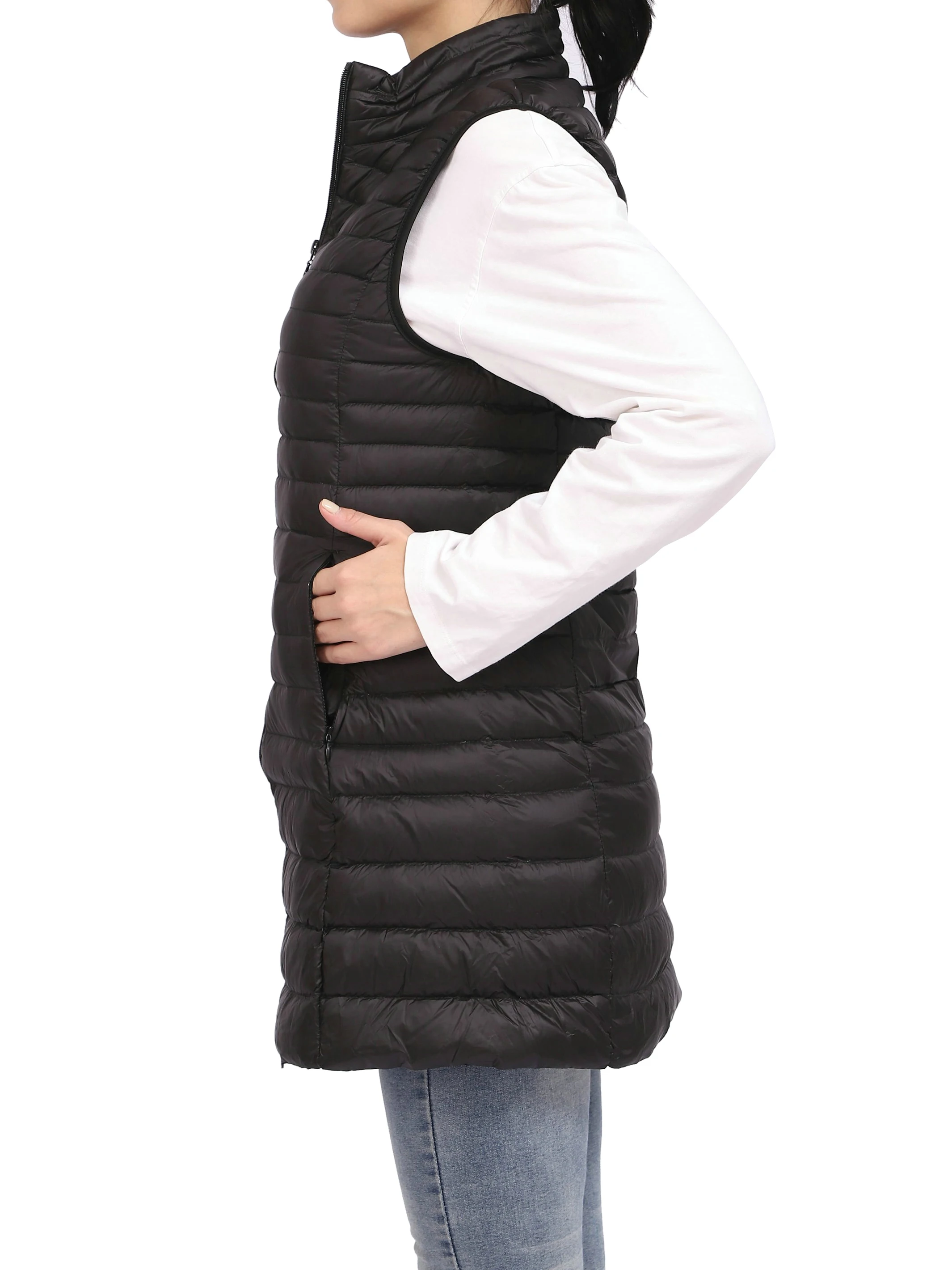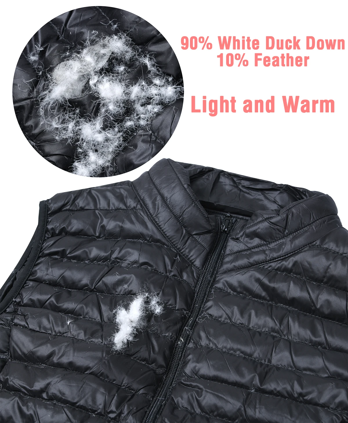 Наполнено 90% белым утиным пухом. Абсолютно отлично сохраняет тепло светильник вес пуховой жилет для Для женщин!