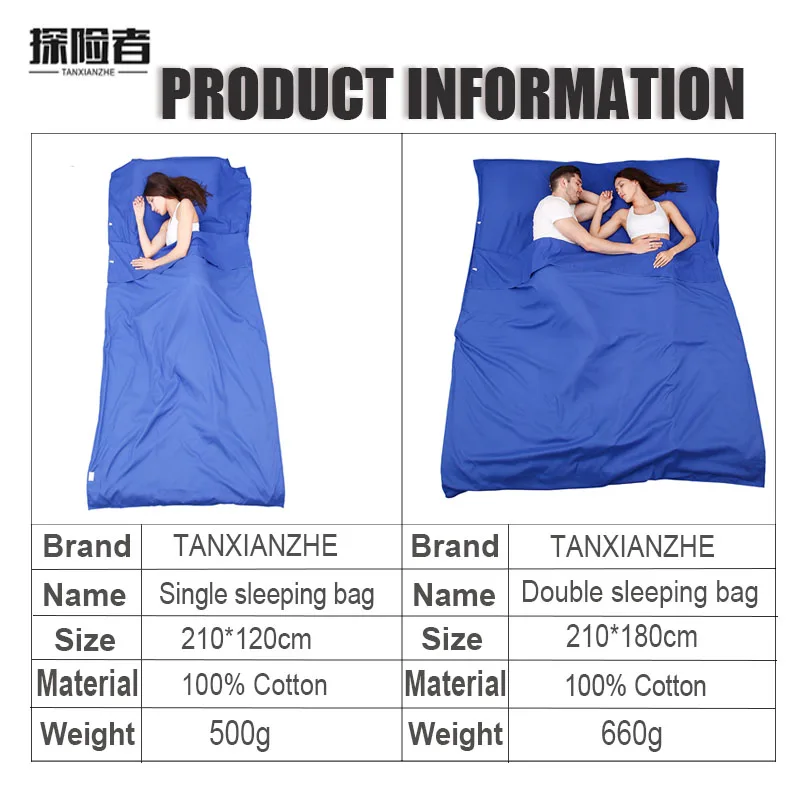 Спальный мешок для 1 человека Тип: 3-х сезонный изолированный грязный спальный мешок для 1 человека Внутренний размер: 210*120 см (Д * Ш) Муфта: 100% хлопок Цвет: белый/розовый/фиолетовый/армейский зеленый/синий/небесно-голубой (как показано) Вес: 500 грамм Посылка тация: 1*1 спальный мешок, 1 * сумка для хранения Спальный мешок для 2 человек Тип: 3-х сезонный изолированный грязный спальный мешок для 2 человек Внутренний размер: 210*180 см (Д * Ш) Муфта: 100% хлопок Цвет: белый/розовый/фиолетовый/армейский зеленый/синий/небесно-голубой (как показано) Вес: 660 грамм Посылка тация: 1 спальный мешок для 1 человека, 1 сумка для хранения