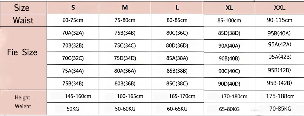 Размер XXL: обхват талии 90-115 см предложение бюстгальтера: 95A(42A)/95B(42B)/95C(42C)/95D(42D)/100A(44A)