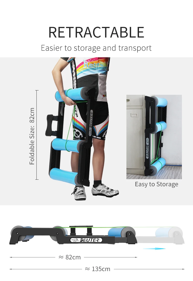 Спецификация: Модель: GT-01 Размер: ≈ в 12 x Ш 46 x Д (82-135) см Материал: ABS пластик + алюминиевый сплав Вес: около 8,8 кг (вся посылка) Особенности 1. Конические ролики, которые держат велосипед в центре во время тренировок для вашей безопасности 2. Складной, упрощает транспортировку и хранение 3. Совместим с велосипедами с диаметром колес 26-29 дюймов, включая велосипеды 700C 4. Простая настройка 5. Ролики из прочного пластика могут уменьшить шум, относительно тихие Вопрос: мой велосипед подходит к тренеру? Пожалуйста, измерьте длину между передней и задней мостами вашего велосипеда, Мин 980 мм-Макс 1100 мм может хорошо работать на велосипедном тренажере.