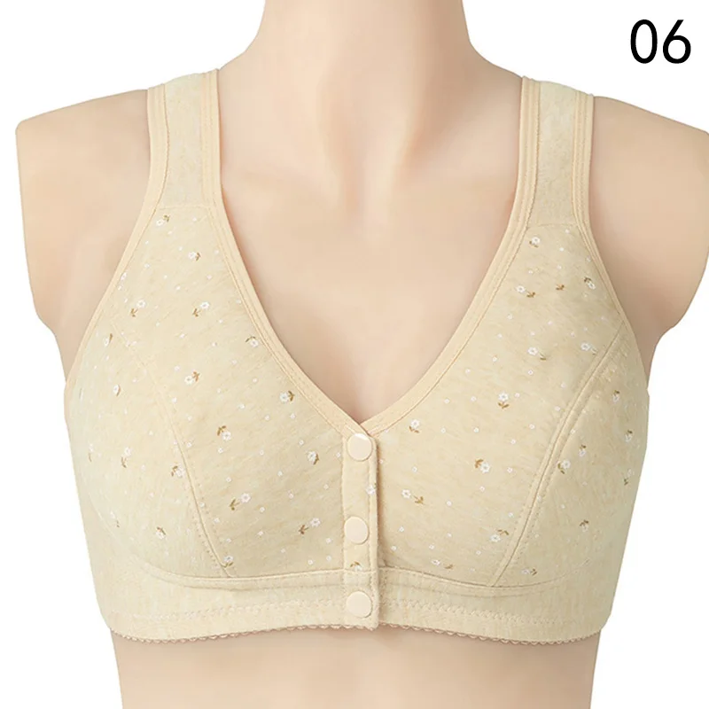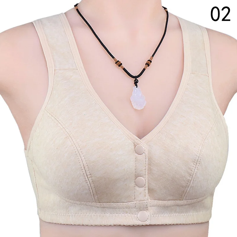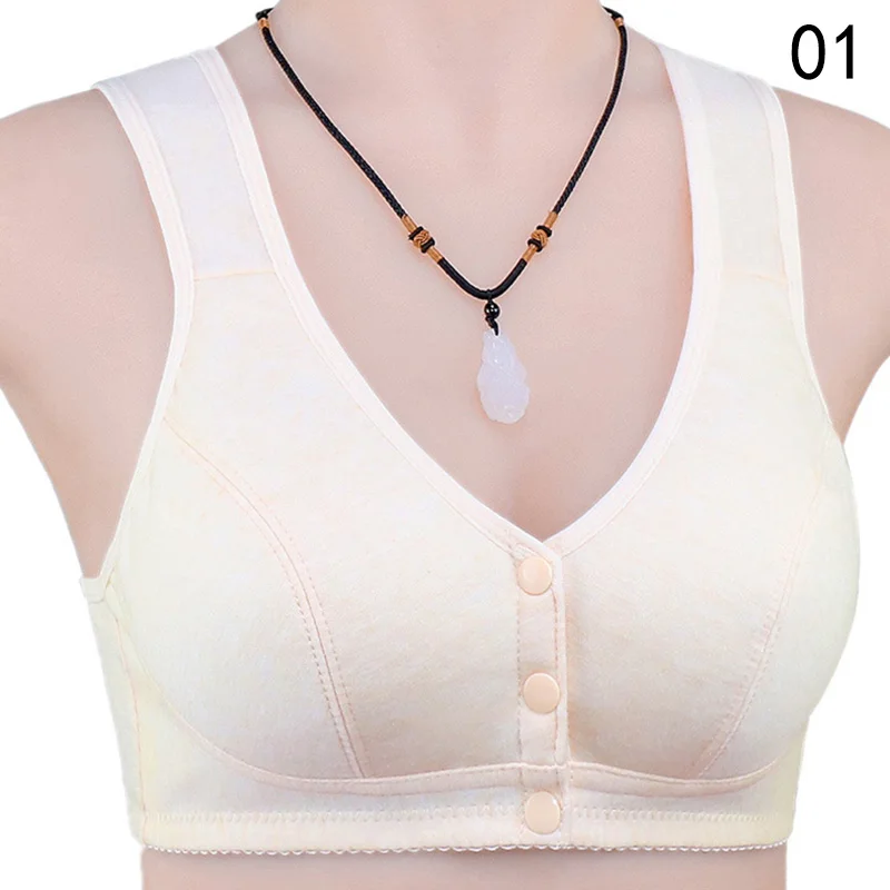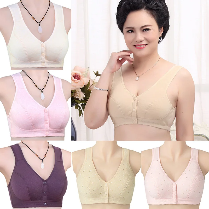 Новинка, хлопковый бюстгальтер без рукавов среднего и пожилого возраста, однотонный бюстгальтер большого размера без стальных колец, нижнее белье с пуговицами спереди, бюстгальтер большого размера