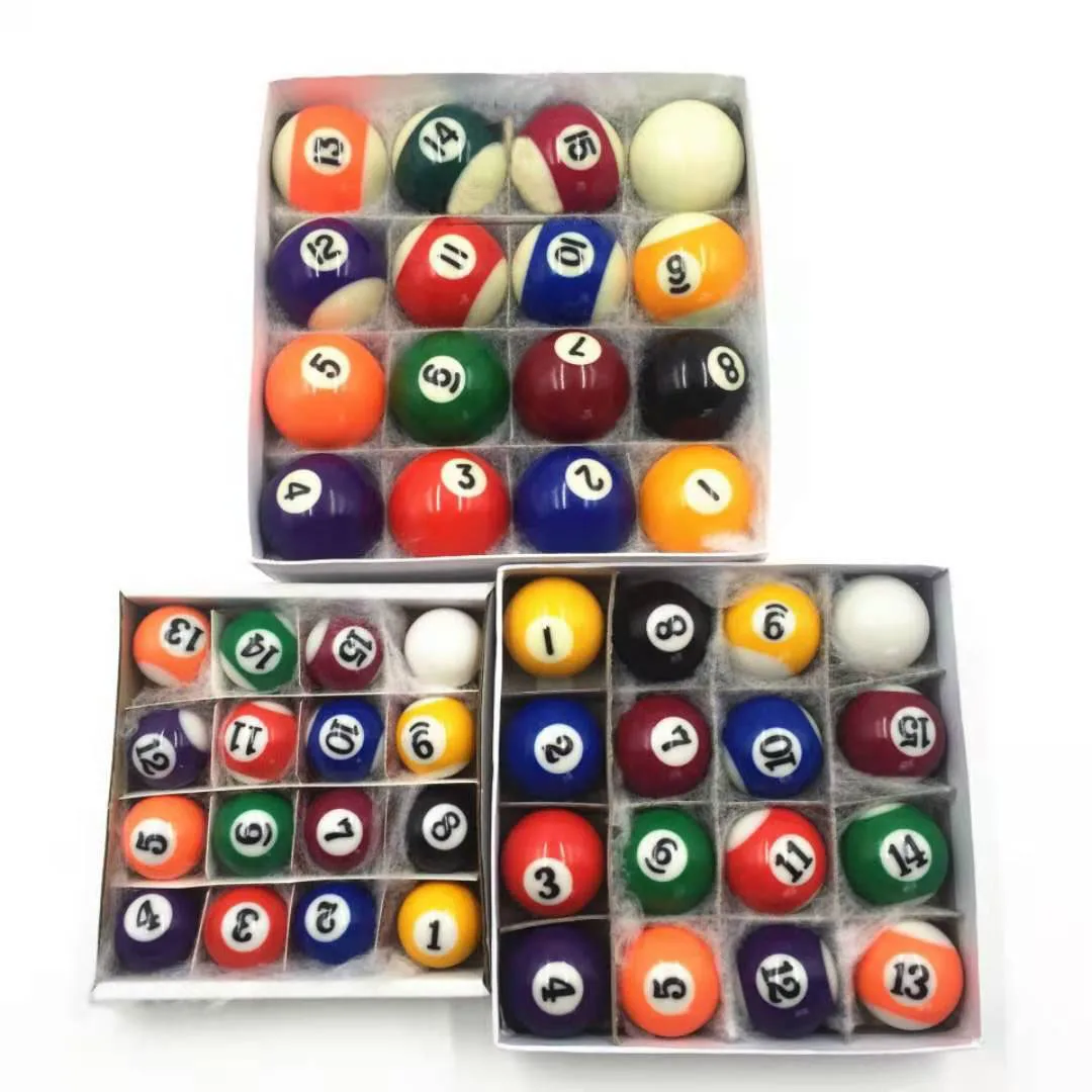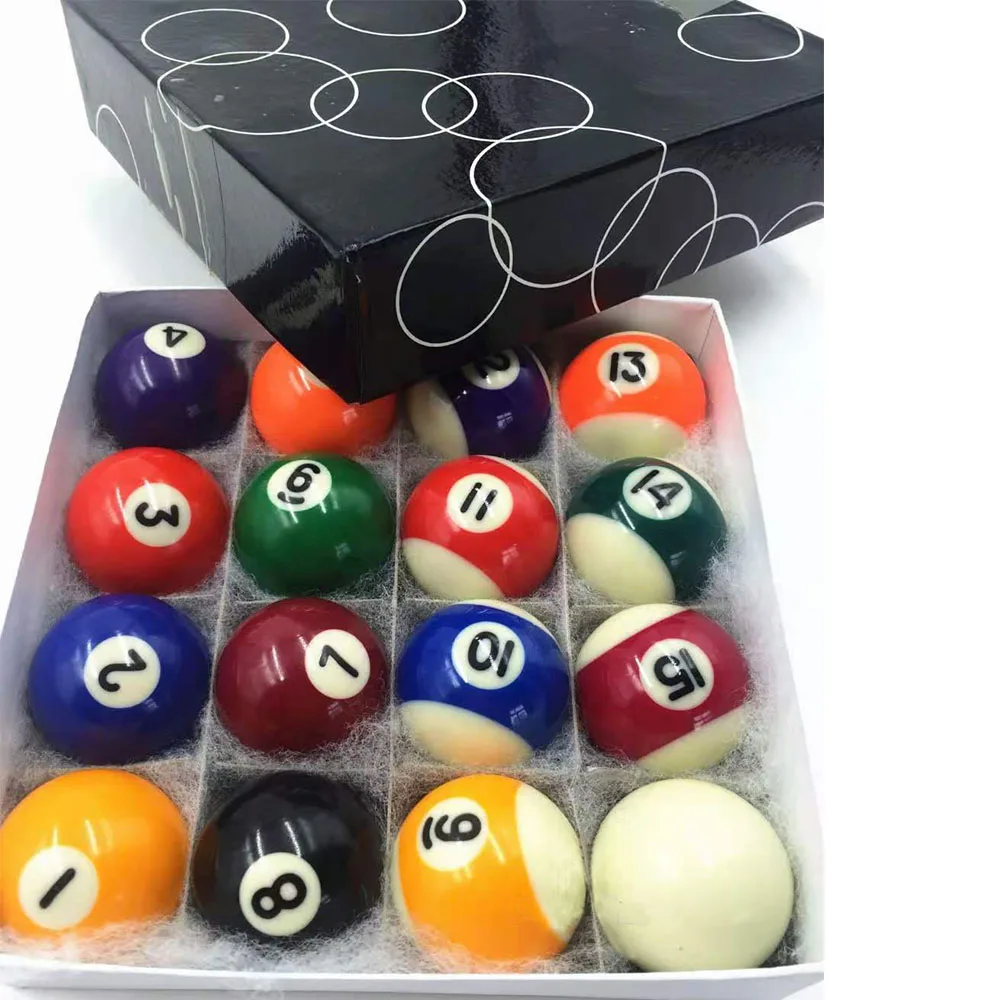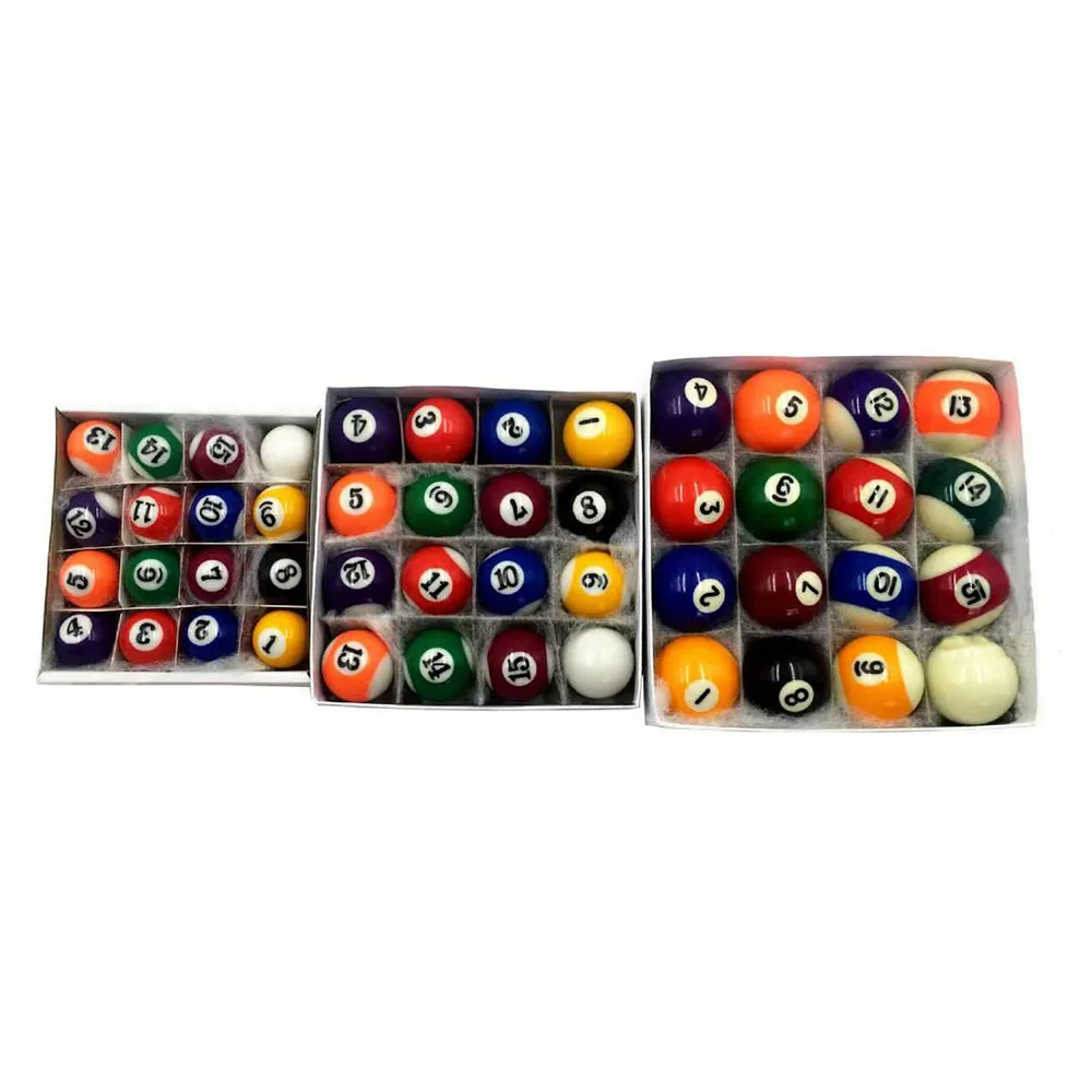 Комплект включает в себя: 7 полосатых шариков, 7 однотонных цветных шариков, 1 черный восьмиугольный и 1 белый битовый шар.