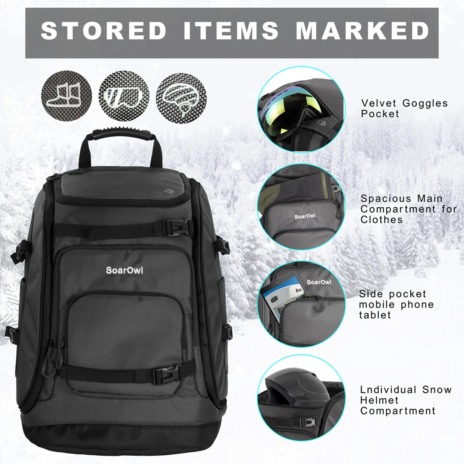 【Независимый отсек 】наша сумка для лыжных ботинок поставляется с 7 различными карманами для хранения лыжных ботинок, лыжных очков и шлемов есть Значки для удобного хранения вашего оборудования. Снаружи есть 2 кармана на молнии с быстрым доступом, а также 2 других кармана слева, справа для ваших аксессуаров. Эти отдельные отделения и некоторые карманы сохранят ваше снаряжение в порядке.