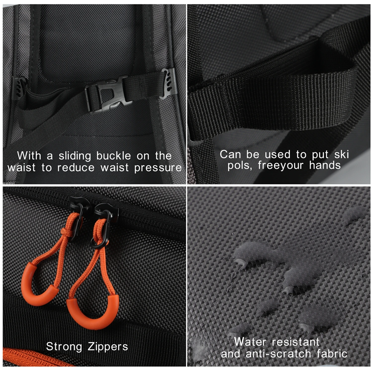 【Element эксклюзивные особенности 】толстый силиконовый мягкий ремень для рюкзака с регулируемой системой никогда не впивается в плечи, и он умудряется оставаться на спине независимо от того, сколько вы двигаетесь. Ремень рюкзака оснащен шнурком для лыжного полюса, который более удобен для путешествий. Кнопки регулировки ремни на передней и левой и правой сторонах лыжной сумки можно использовать, чтобы положить лыжи, будь то Двойная доска или одна доска, вы можете легко забрать его.