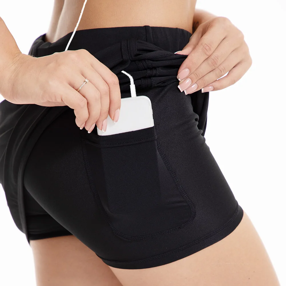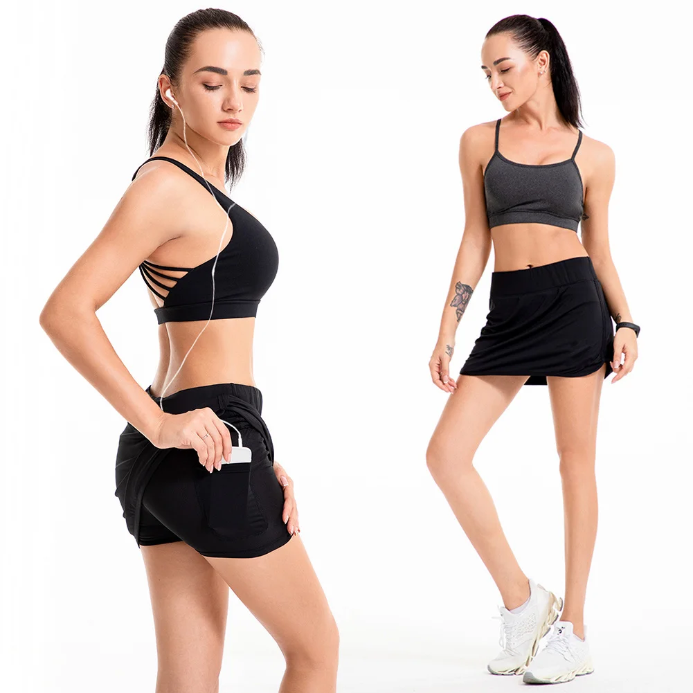 2. Надежная и удобная Двухслойная юбка и шорты внутри, вы можете наслаждаться спортом, не беспокоясь. Двухслойная треугольная ластовица позволяет избежать катания вверх и прижимания, увеличивает ваш диапазон движения