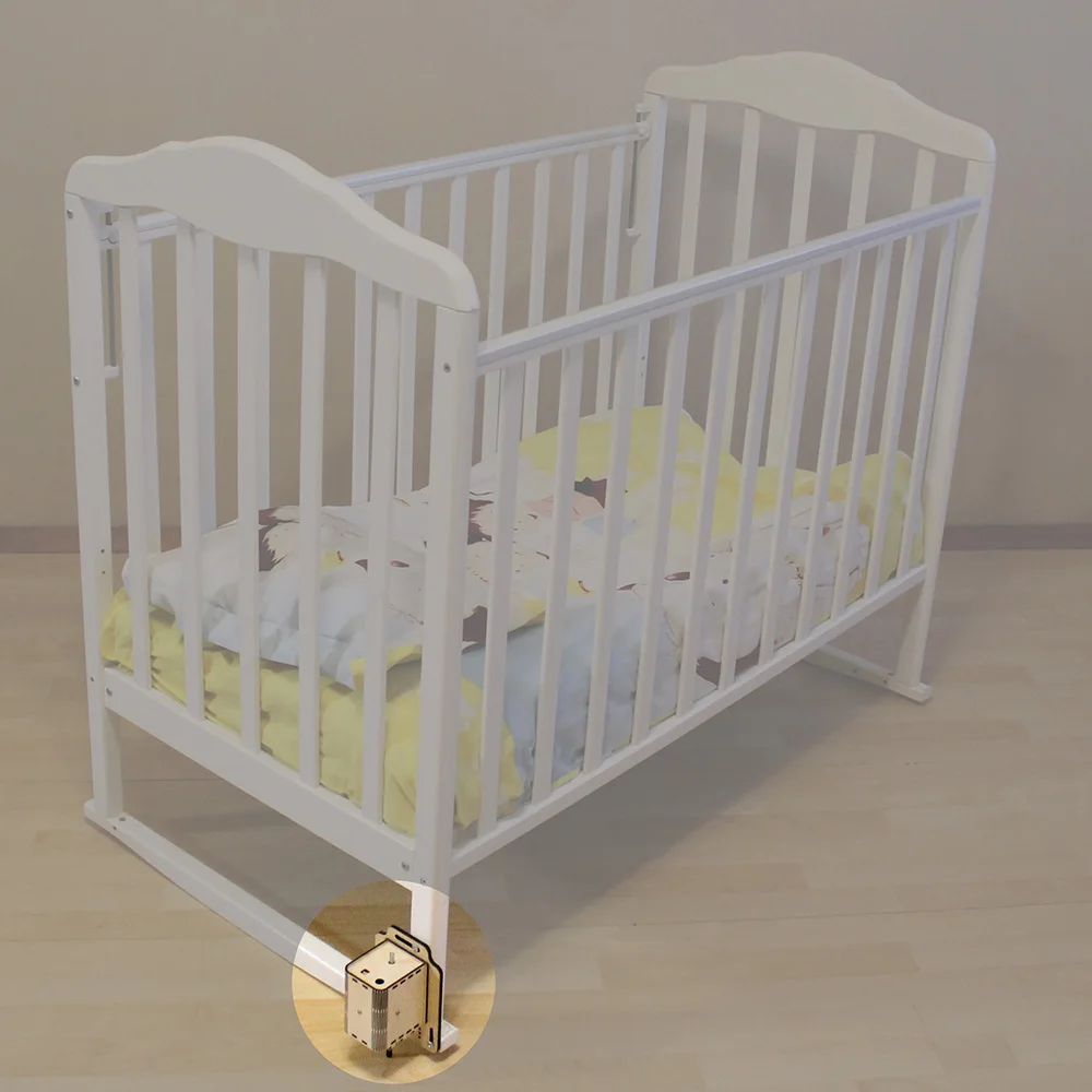 # Абсолютно бесшумно – никакого жужжания или писка! # Не содержит никаких моторчиков и ниток, снижающих надежность! # Не увеличивает габариты кроватки, не изменяет ее внешний и товарный вид. # Таймер качания (15 минут, 30 минут, 1 час, 2 часа, 4 часа, 6 часов, 8 часов, без ограничения) – малыш укачивается ровно столько, сколько решите вы. # Шесть скорости качания - выбирайте самый комфортный режим для вашего малыша! # Дистанционное радиоуправление 433 МГц .