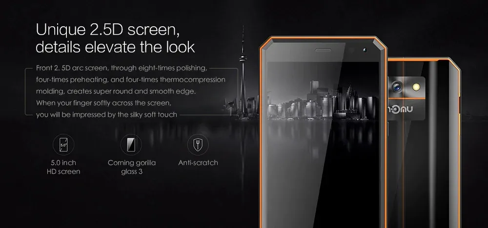 2.5D относится к небольшой кривизне на краю стеклянного дисплея. NOMU M6 добавляет эту легкую изгибу для красивого дизайна, гладкое ощущение сцепления и бесшовное прилегание к остальной части корпуса телефона.