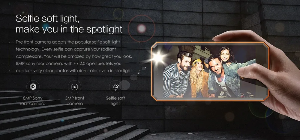 NOMU M6 оснащает заднюю камеру 8,0 МП и фронтальную камеру 5,0 МП, которая сопровождается мягким светильник светодиодный-вспышкой. Камера делает жизнь записанной и сохраненной от первой улыбки до первого шага до первого свидания. Поскольку светильник имеет огромное значение, NOMU добавляет мягкий светильник для селфи, чтобы сделать ваши снимки красивыми и профессиональными.
