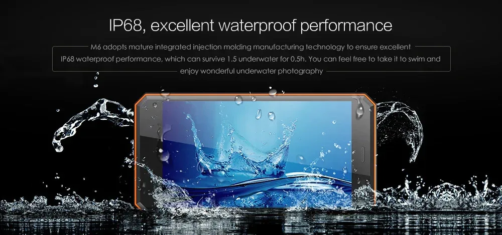 NOMU M6 имеет IP рейтинг 68, что означает, что вы можете принести его с собой в приключениях и получить комфорт, зная, что вы можете продолжать использовать эти устройства. Устройство также сертифицировано с MIL-STD-810G, чтобы предложить вам нормальное использование в экстремальных условиях. С NOMU, без аварии.