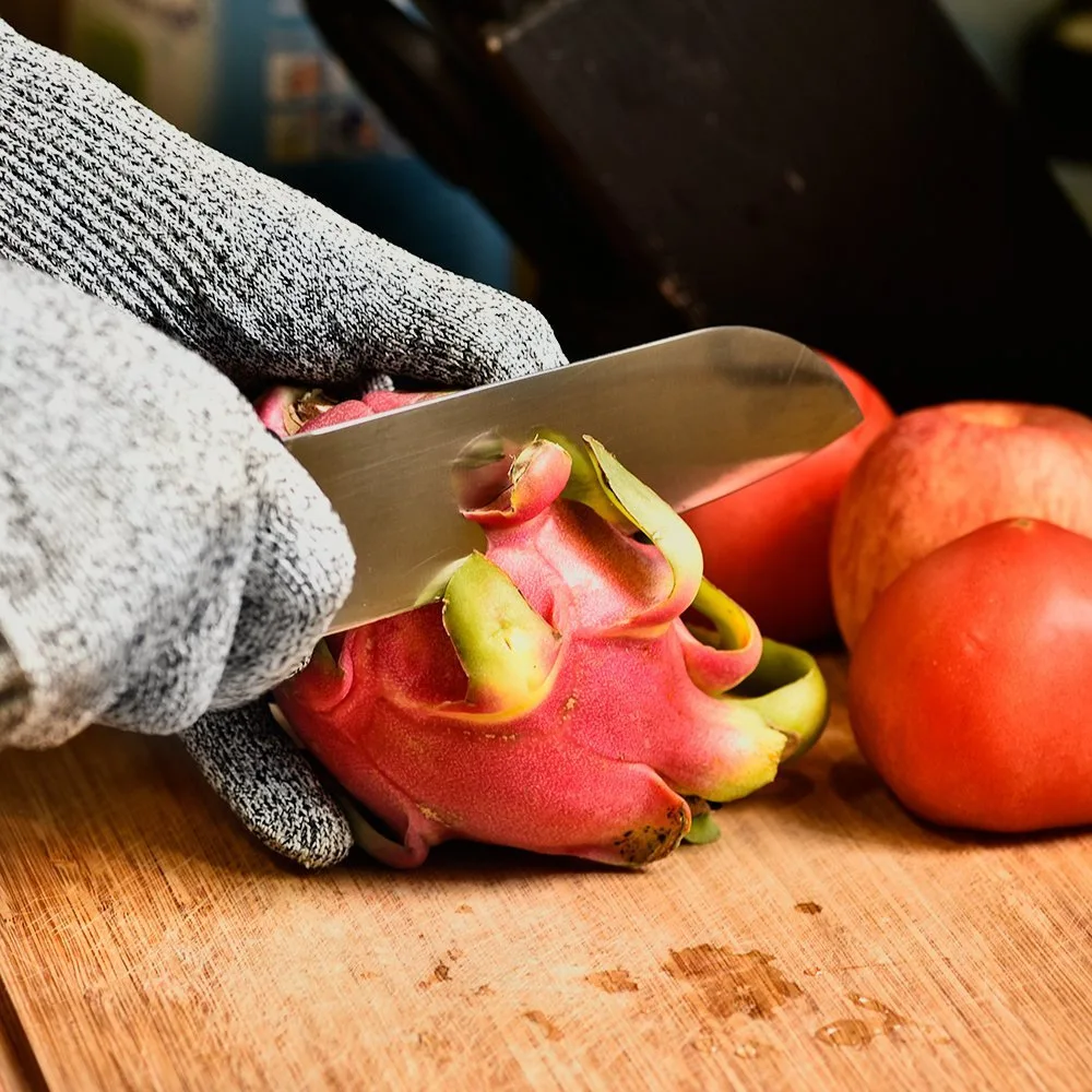 Особенности: 1. Безопасная защита: нейлон, спандекс, СВМПЭ, стекловолокно 2. Пять пальцев, каждая ставка на одну перчатка из нержавеющей стали и белые хлопковые перчатки opne и одну белую хлопчатобумажную перчатку 3. Подходит как для правой, так и для левой руки 4. Функция: устойчивый к порезам, устойчивый к удару, anti-knife.Anti-Scratch 5. Степень защиты: 5 Характеристики: Материал: HPPE (полиэтилен высокого давления) Цвет: серый светильникРазмер: