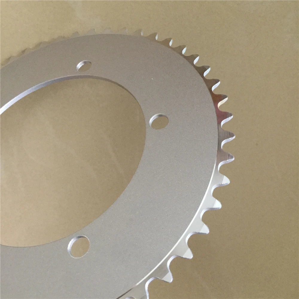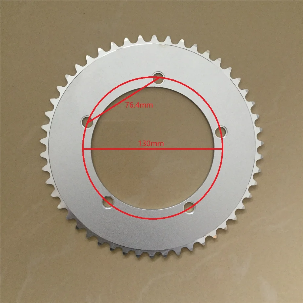 Цепная звезда велосипеда на фиксированную передачу Track Bike Chainwheel, диаметр крепления 130 мм, 44T 46T 48T 50T 52T 53T, для фикси и односкоростных велосипедов, серебристая.