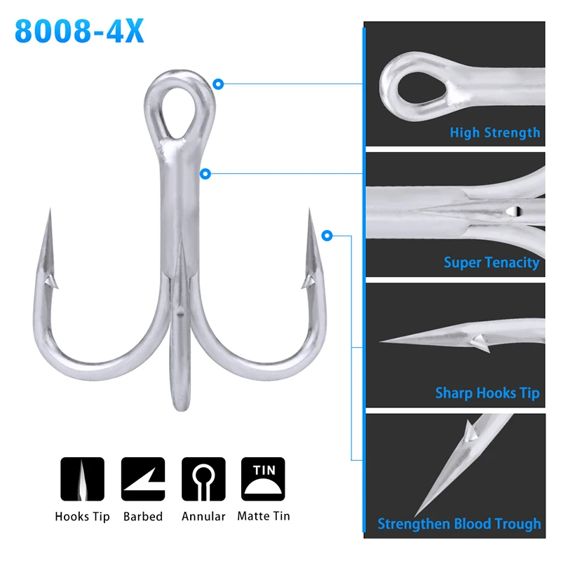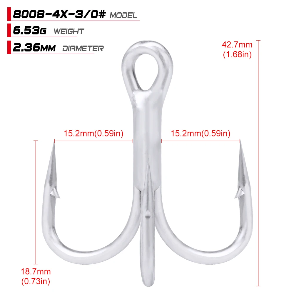PROBEROS 5/10 шт. рыболовных крючков 4X матовый олова тройной крючок 4/0-3/0-2/0-1/0-1-2-4-6-8 # высокоуглеродистая Сталь высокая прочность крюк
