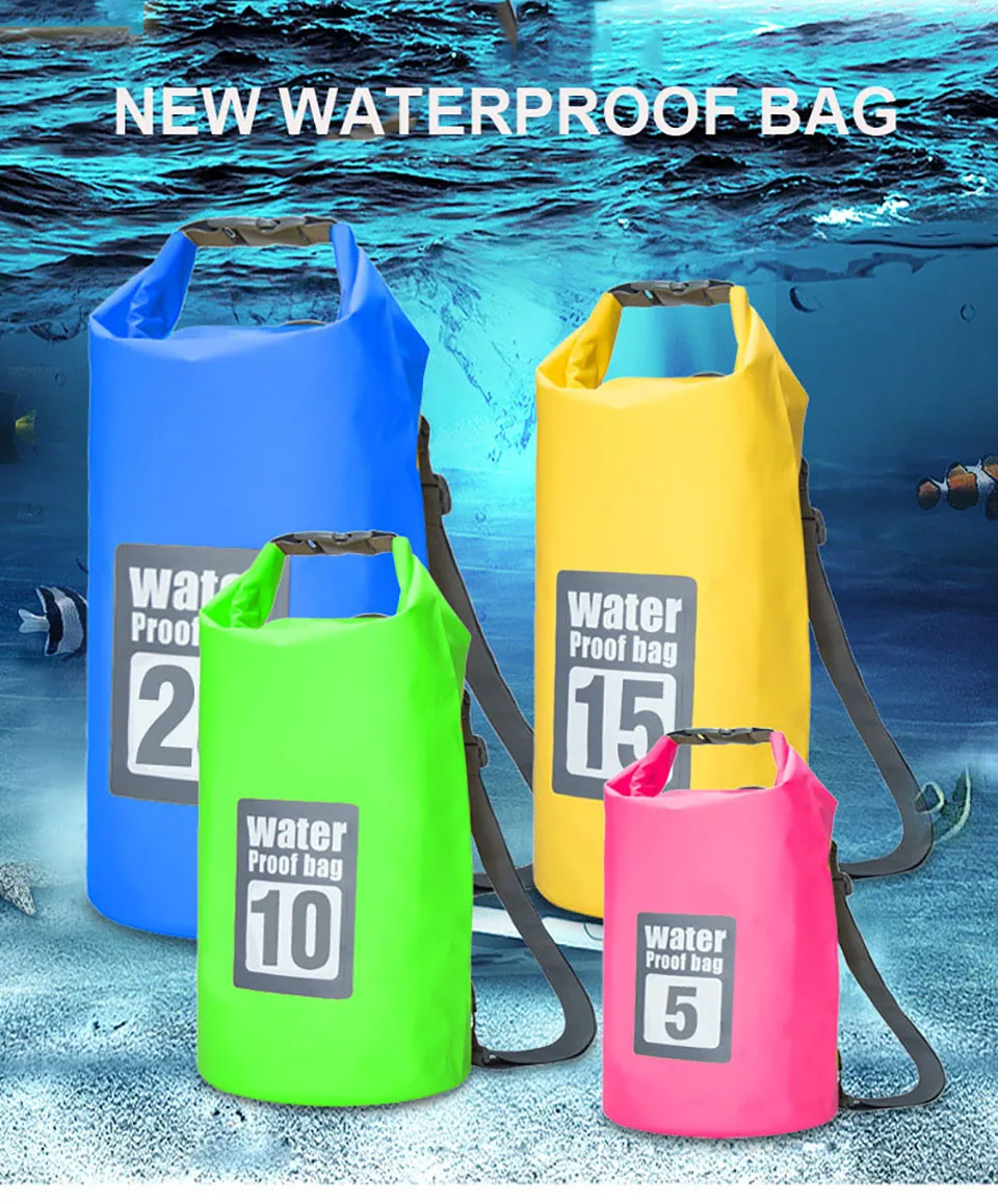 Портативный водонепроницаемый рюкзак 5 л, 15 л, 20 л, складной рюкзак для рыбалки, каякинга, рафтинга, лодки, реки, трекинга